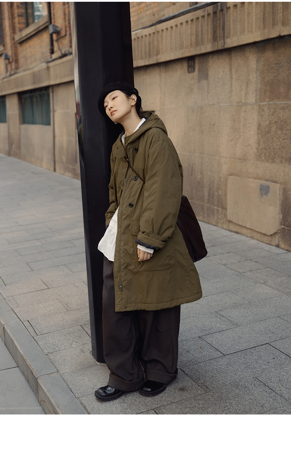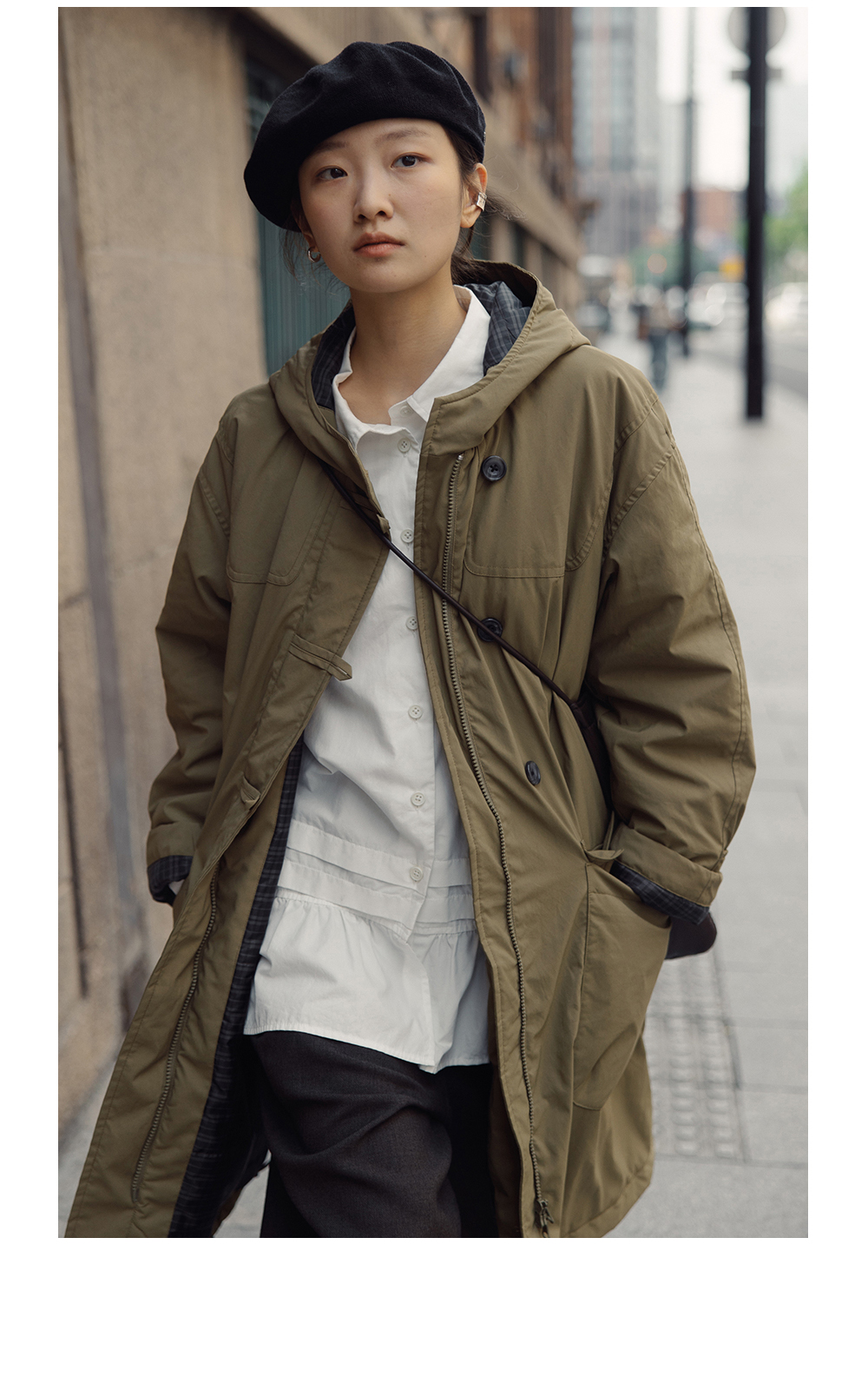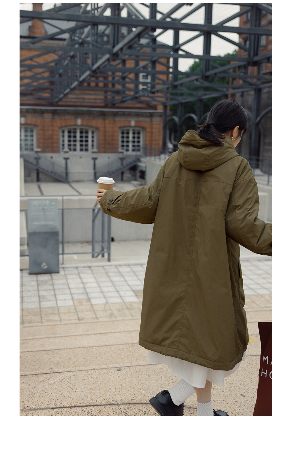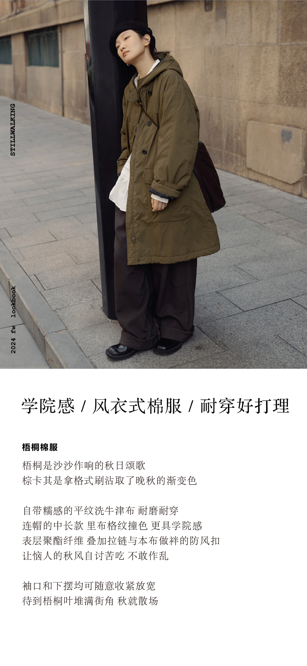 步履不停/4D25007C/学院简约风连帽中长款棉服大衣外套