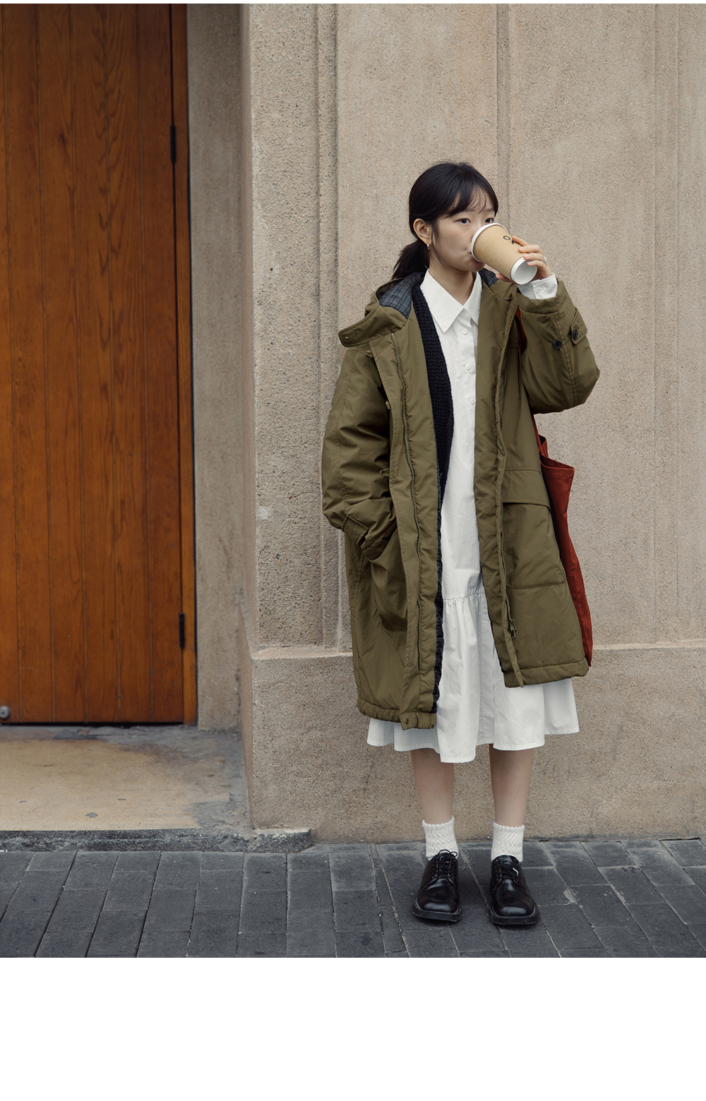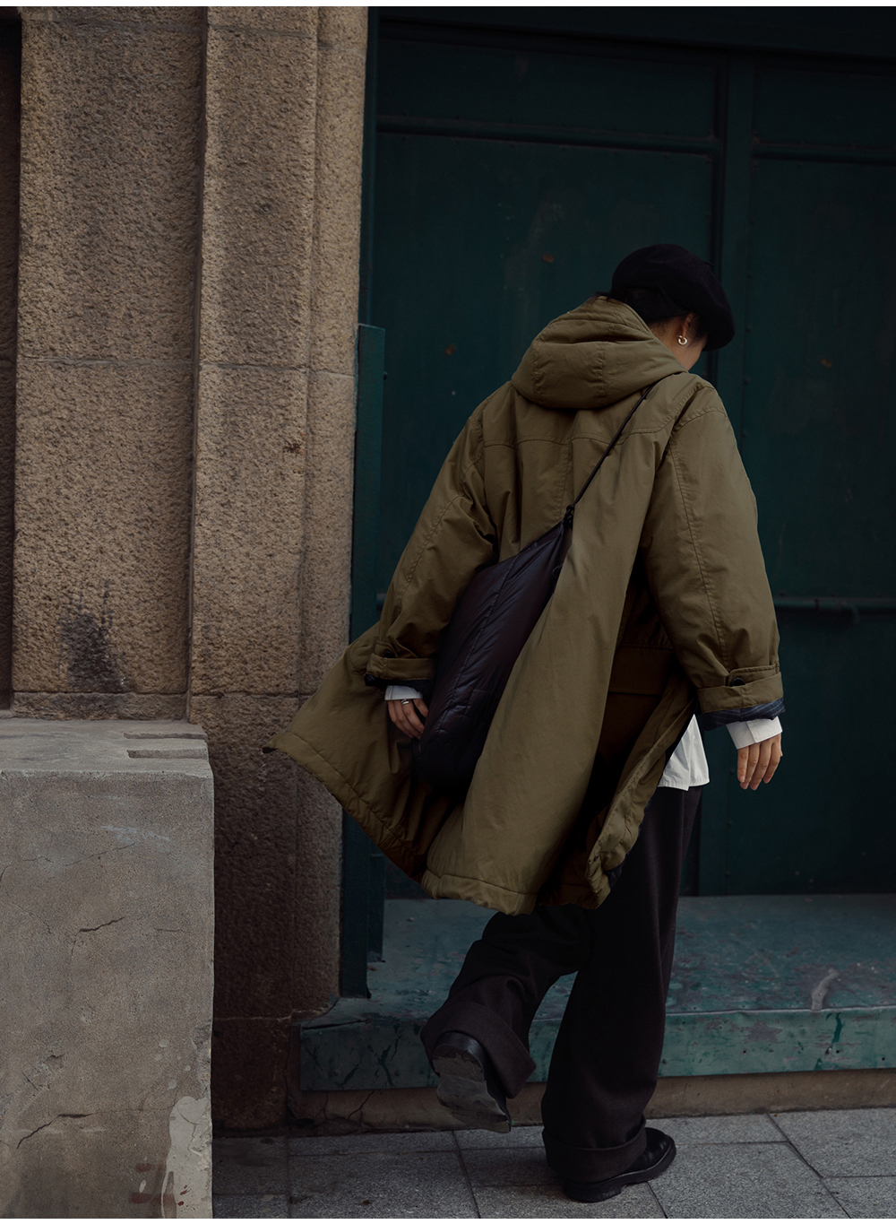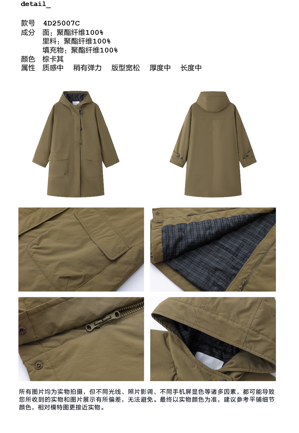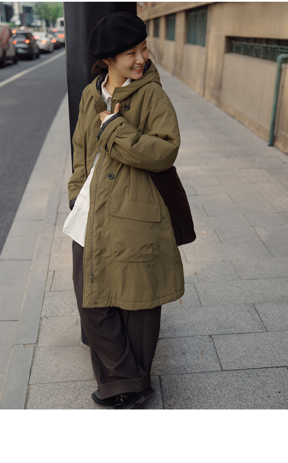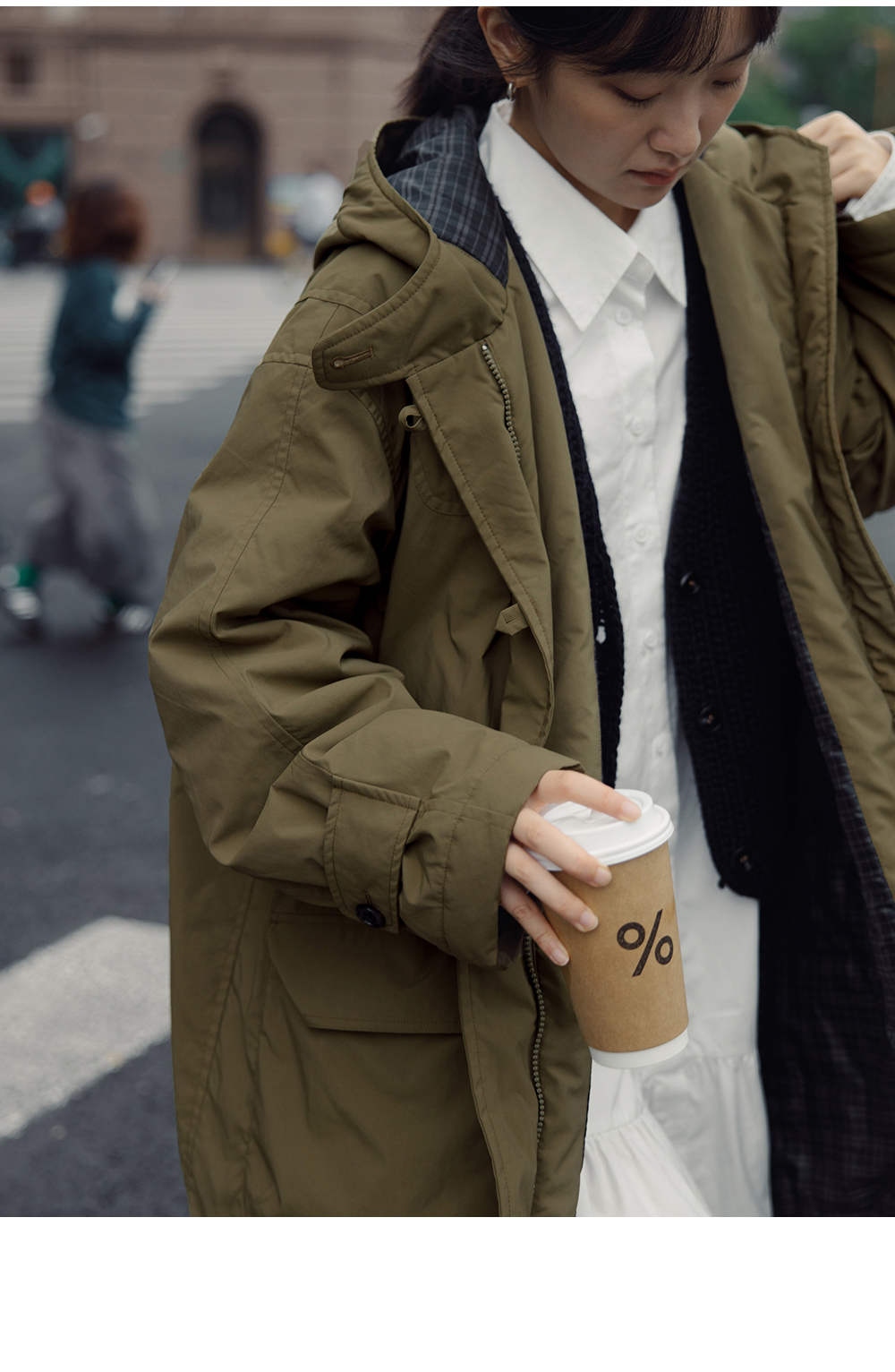 步履不停/4D25007C/学院简约风连帽中长款棉服大衣外套