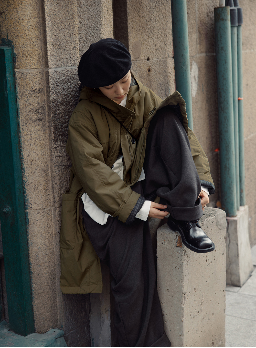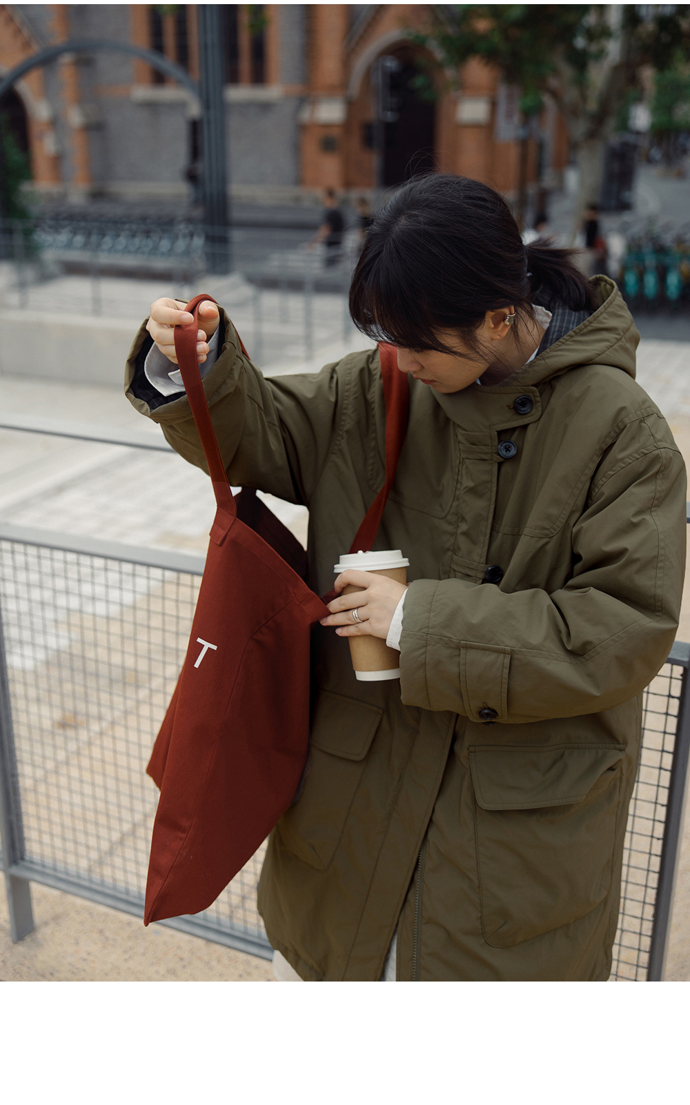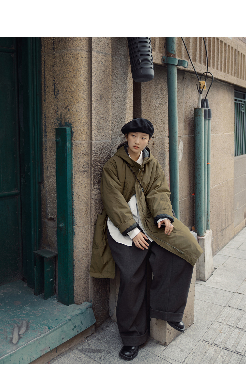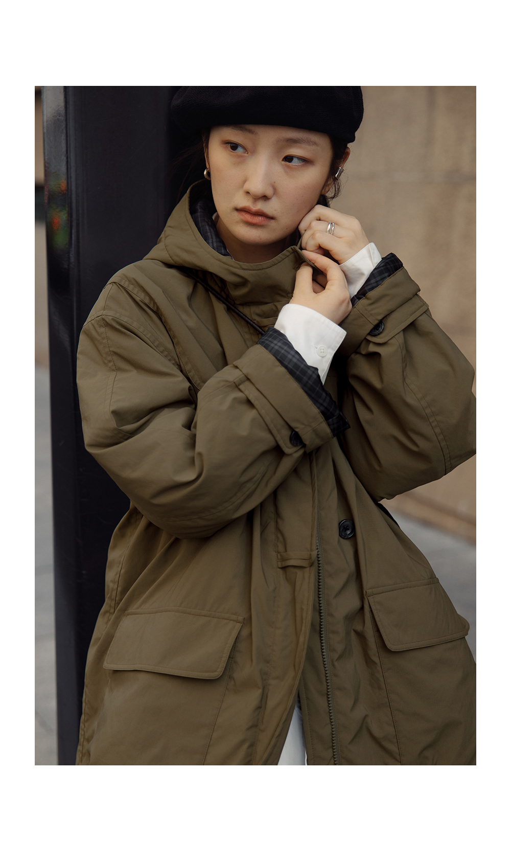 步履不停/4D25007C/学院简约风连帽中长款棉服大衣外套