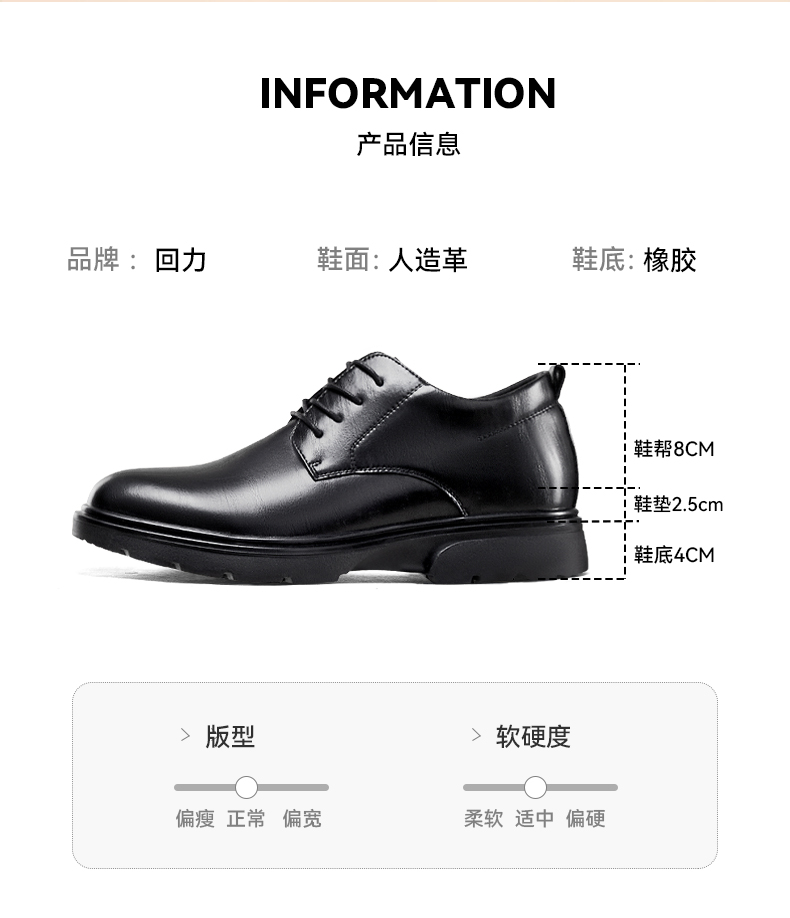 回力皮鞋男鞋内增高黑色鞋子厚底商务休闲男士增高皮鞋结婚新郎鞋2134