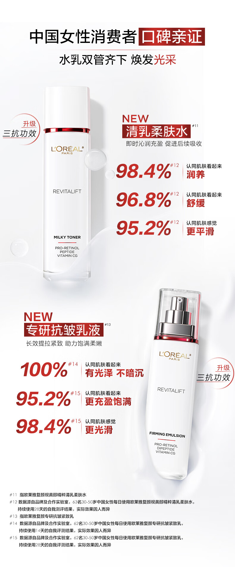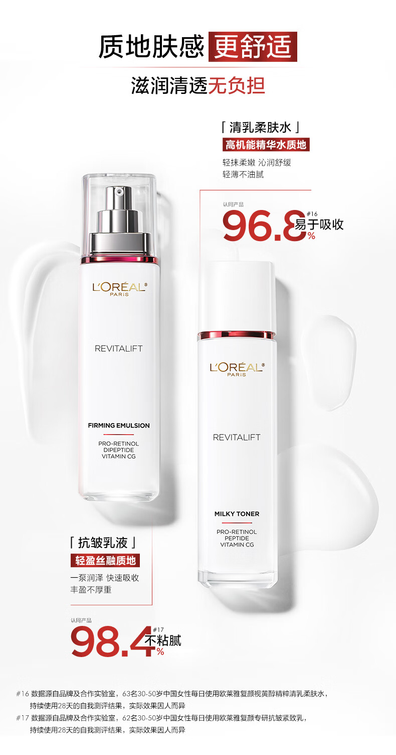 欧莱雅复颜视黄醇水乳中样组合(柔肤水65ml+乳液50ml)