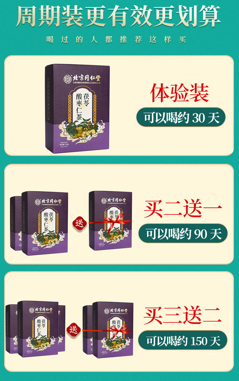 北京同仁堂茯苓酸枣仁茶 睡眠茶助眠茶150g/盒( 5g*30袋)
