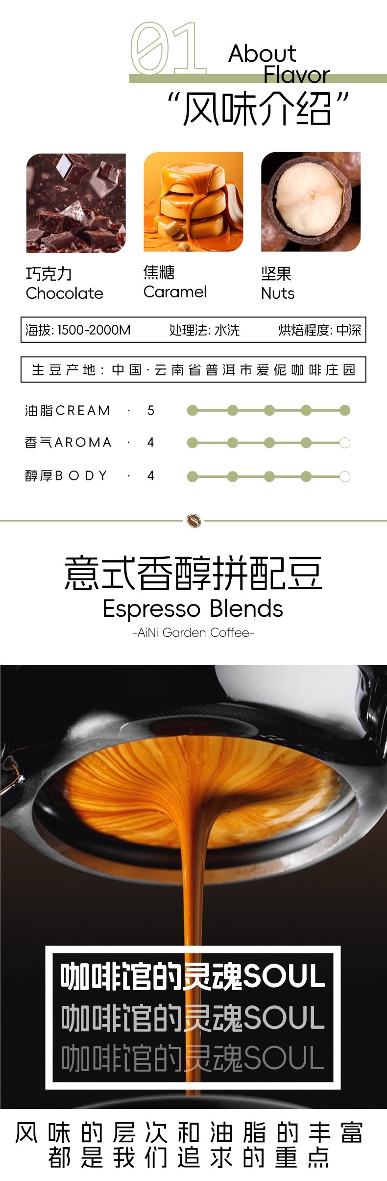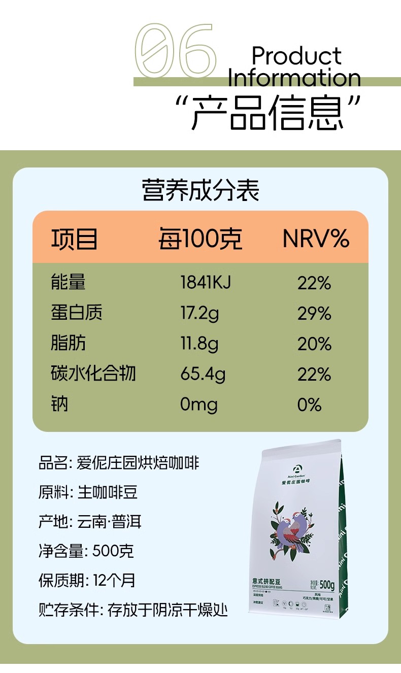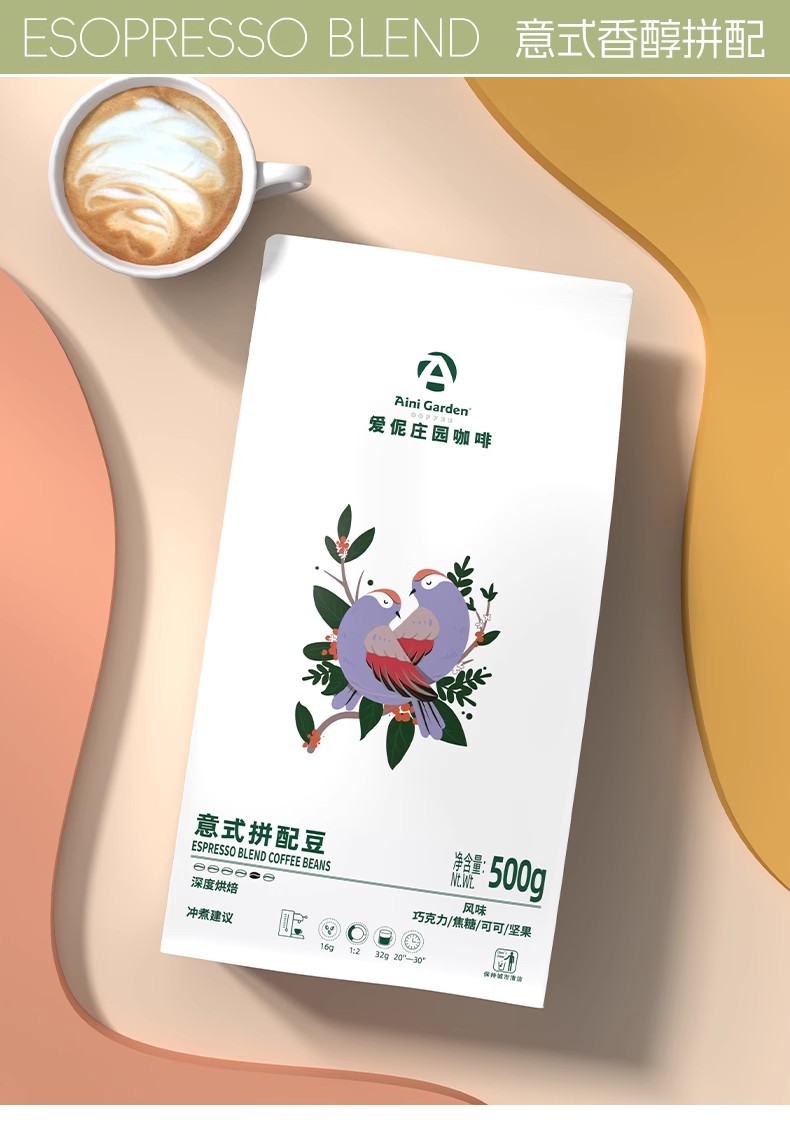 爱伲庄园 意式香醇拼配咖啡豆 深度烘焙 云南小粒咖啡 500g袋装 油脂丰富