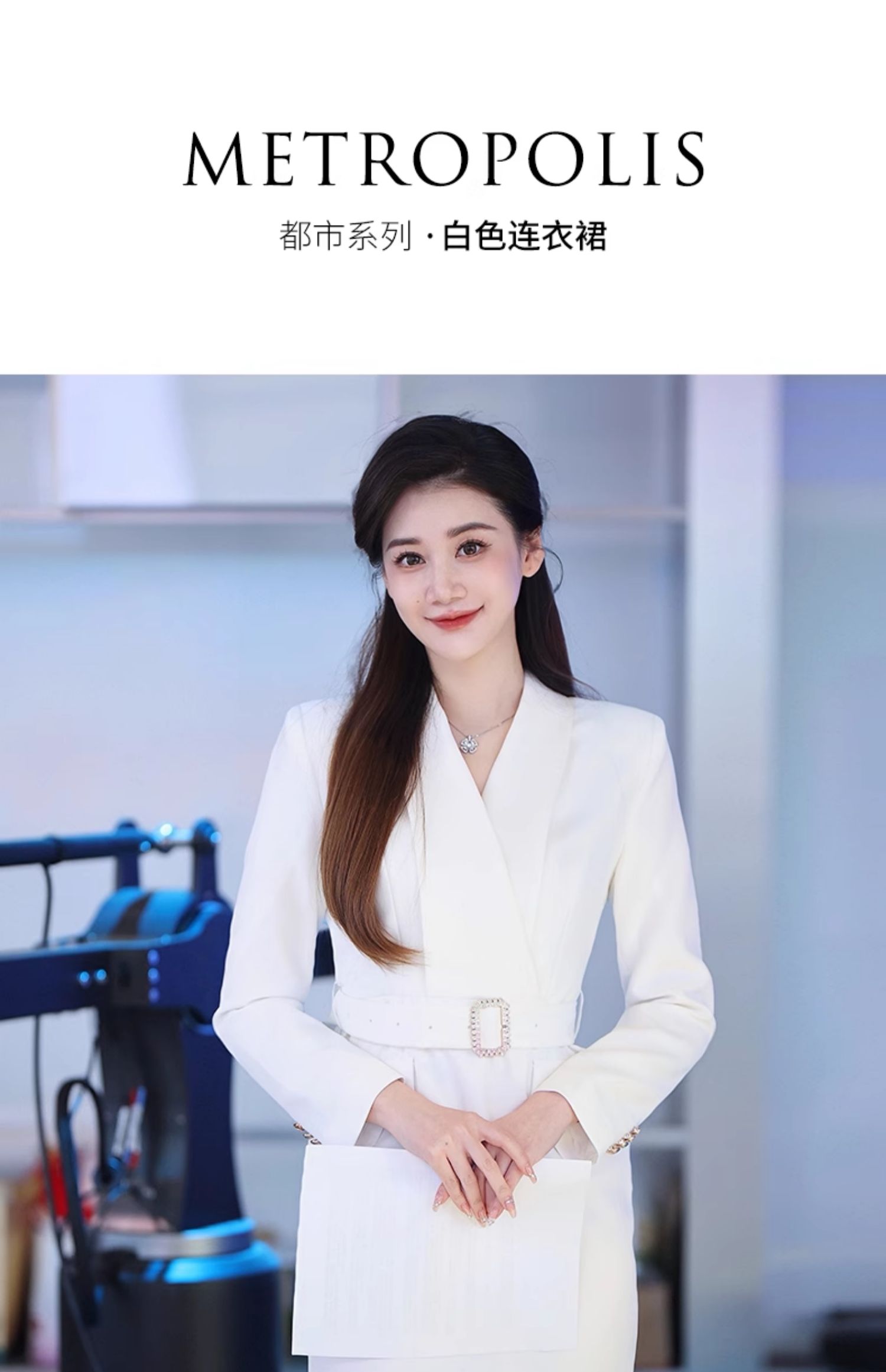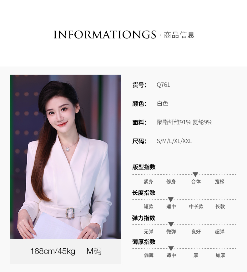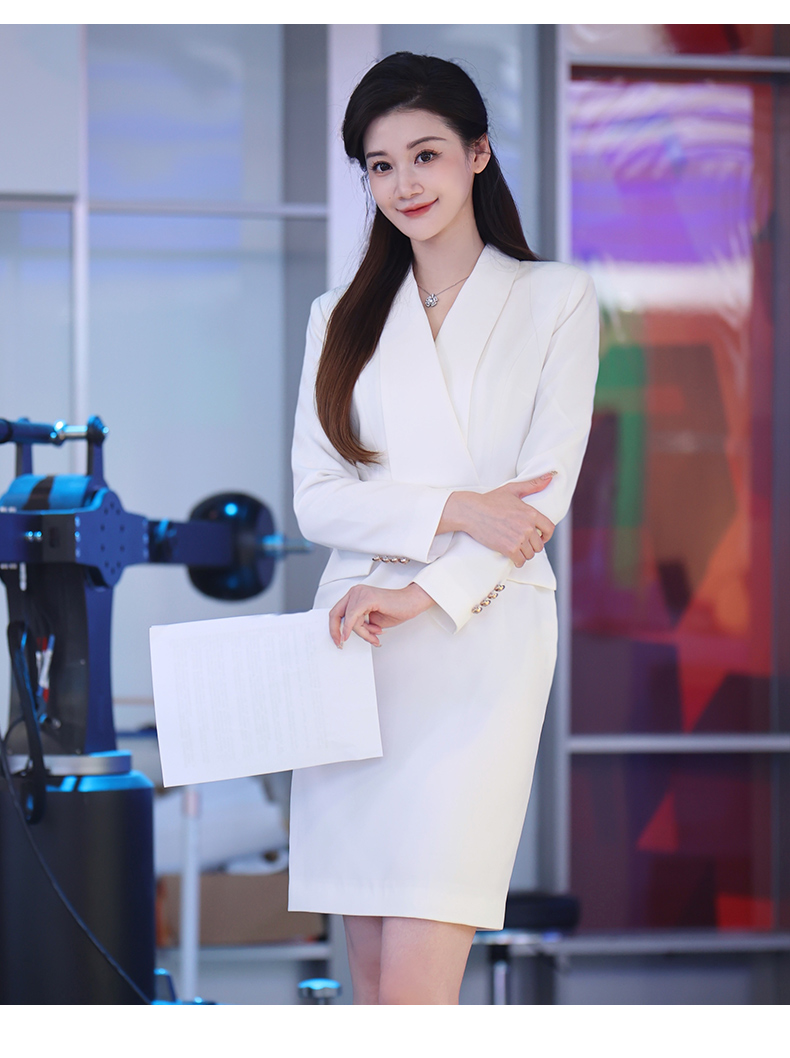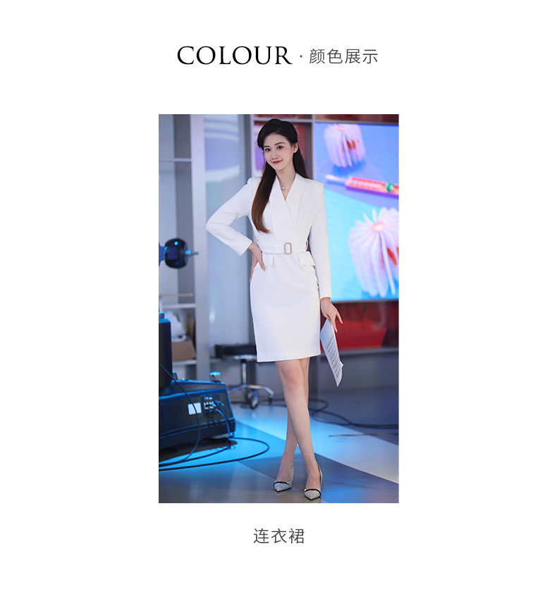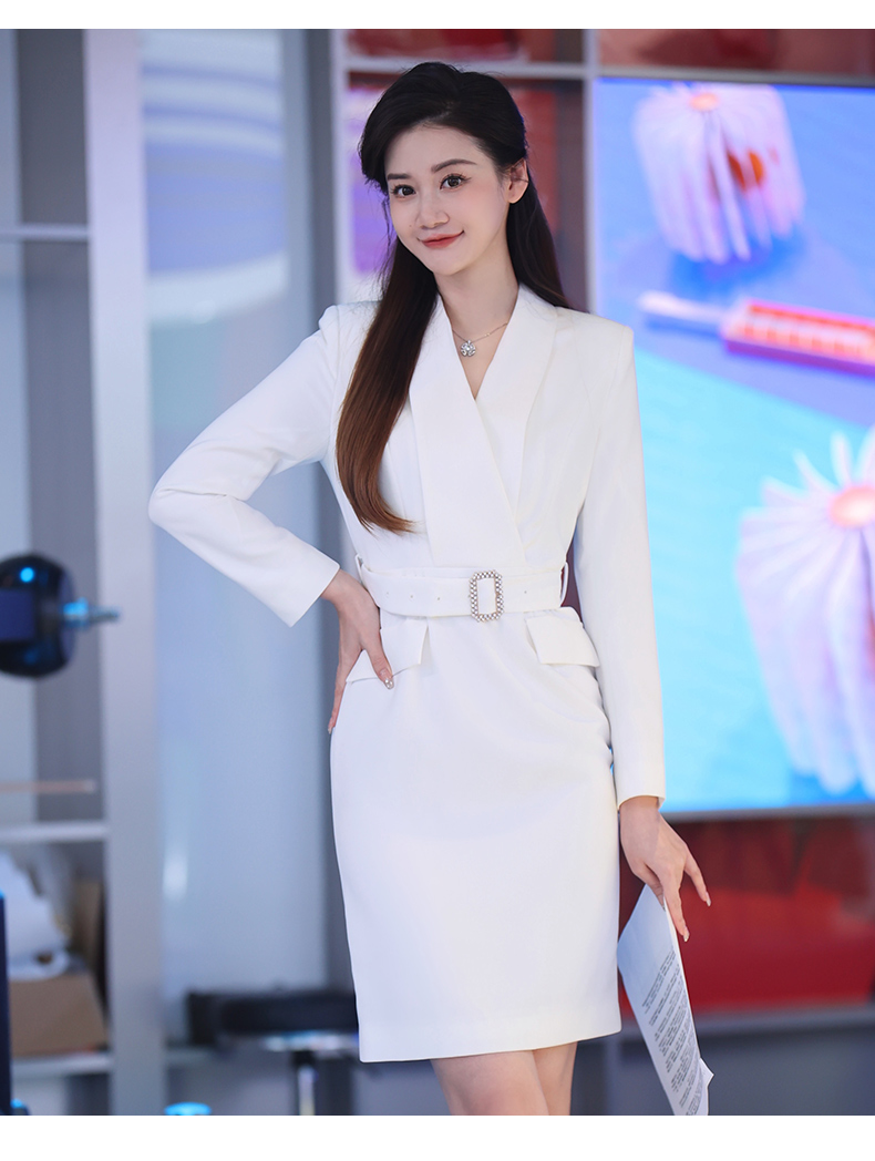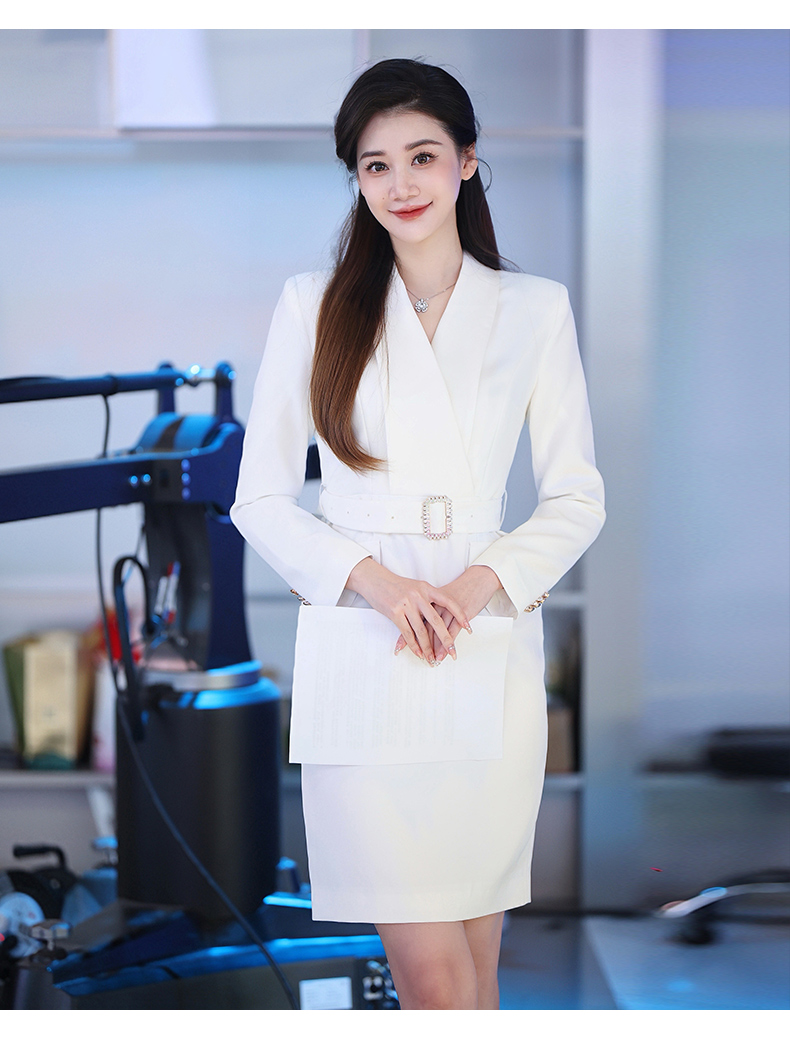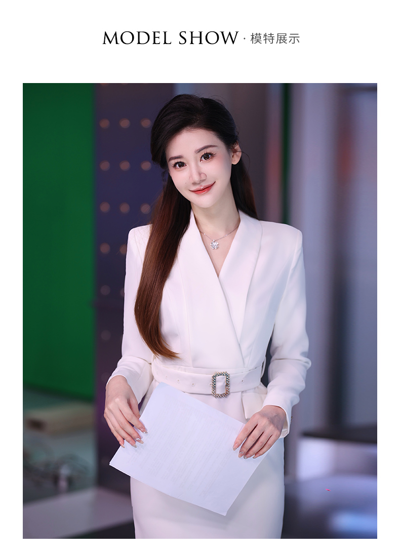 IWY/气质白色收腰显瘦西装连衣裙女上镜主持职业长裙美容院正装Q761