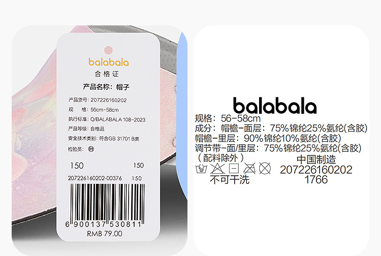 【商场同款】巴拉巴拉儿童帽子男女童空顶帽遮阳防晒便携外出时尚