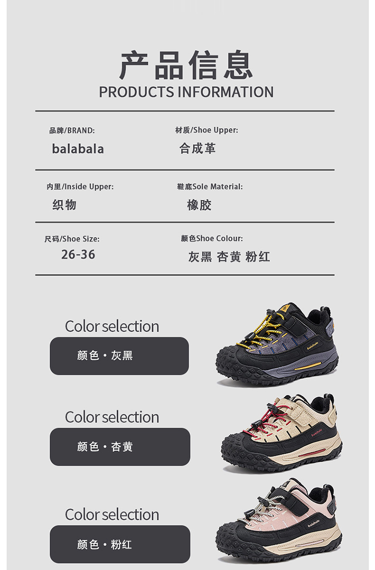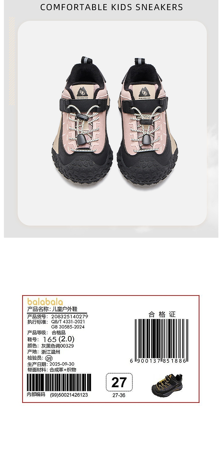 巴拉巴拉童鞋儿童户外鞋男女童2025年新款秋冬透气鞋子舒适百搭