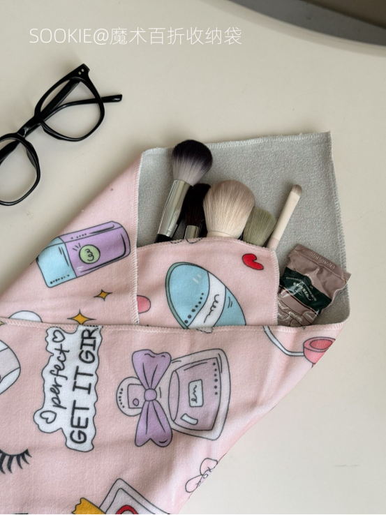 【美妆控必入!少女心事收纳布绝了】粉色系+美妆图案的少女心事用来收纳眉笔、口红、化妆刷超搭! 一布折叠超灵活 自粘牢固还耐磨美妆收纳从此整洁又少女~