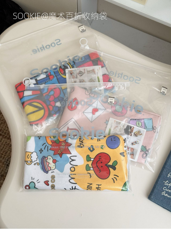 【包装细节拉满!SOOKIE魔术收纳袋太会了】 独立透明包装 每款花色一目了然 收纳干净又卫生 内里收纳布随心折叠、耐磨防刮 魔术自粘还手感舒适 万物可包超实用 包装到收纳都让你省心!