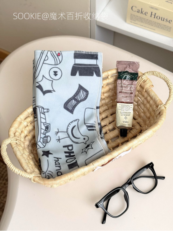 一布解千愁的收纳神器来啦! 自由折叠能当纸巾盒、护腕、杯子套 数码、美妆、生活用品全可包 耐磨防刮面料抗摩擦 魔术自粘甩不散 超纤面料手感好还能清洁 告别杂乱 让生活超整洁!