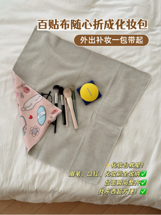 【一布N用!收纳界的全能选手来了】 能折纸巾盒,桌面瞬间整洁 能做护腕,缓解鼠标手超贴心 还能当化妆包,眉笔口红化妆刷全收纳! 百贴布材质耐磨又能清洁 55*55cm尺寸万物可包 让收纳变得简单又有趣~