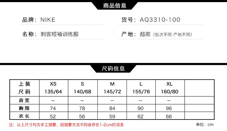 NIKE耐克MERC LOGO训练短袖热身服童款AQ3310-100