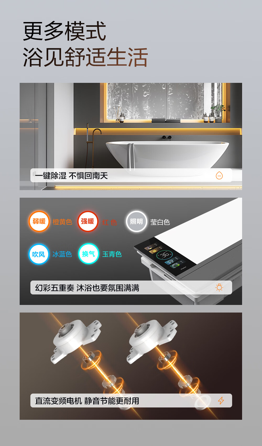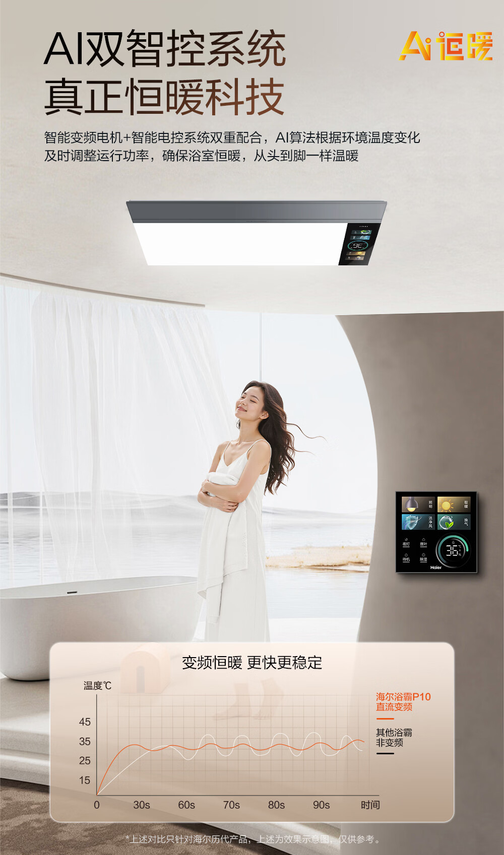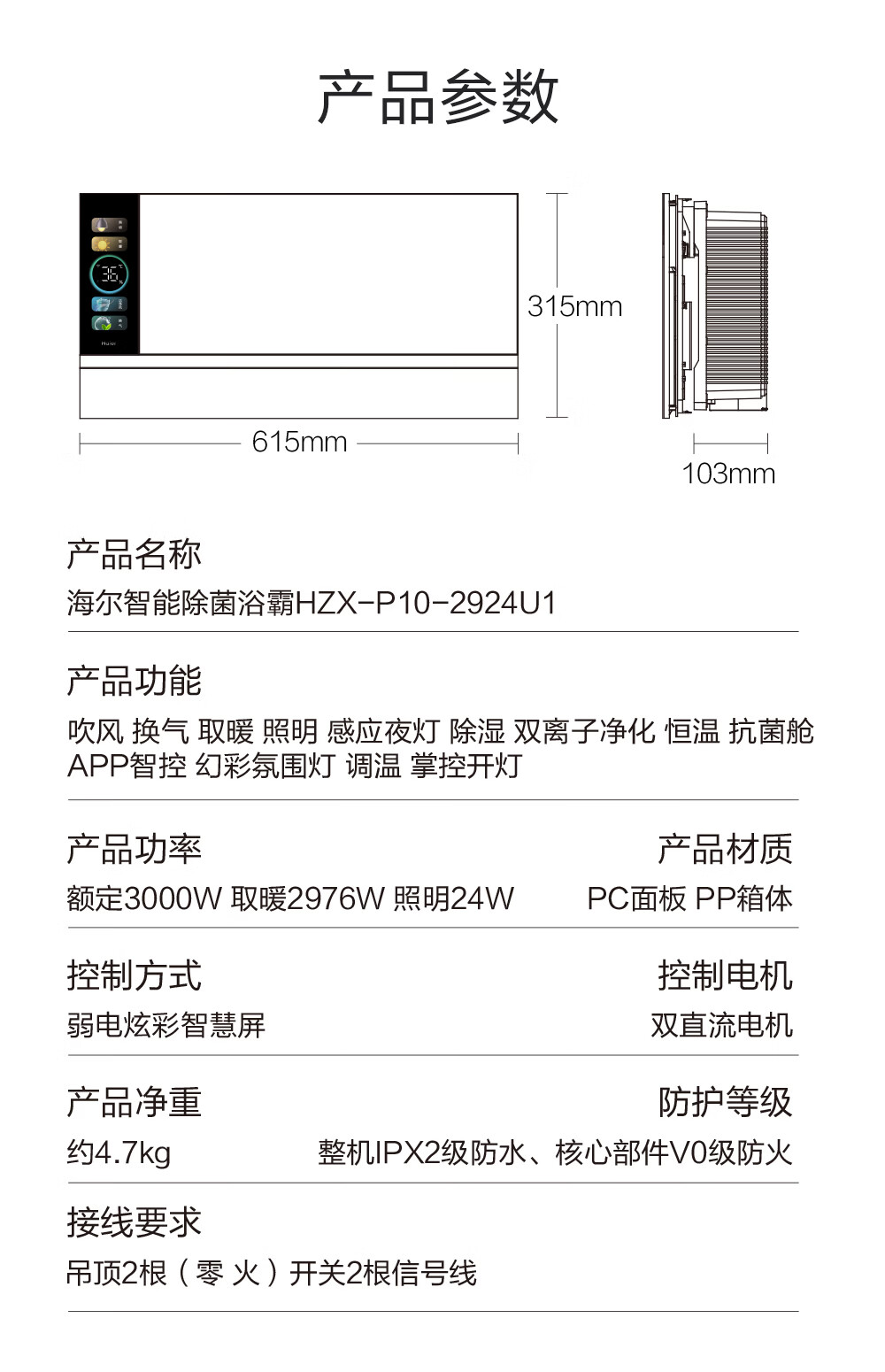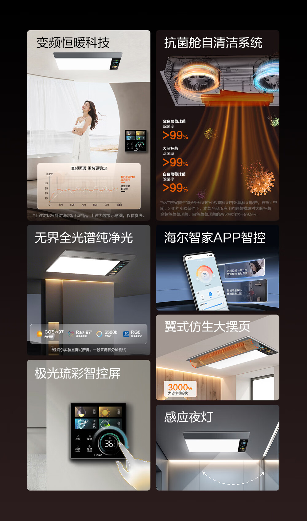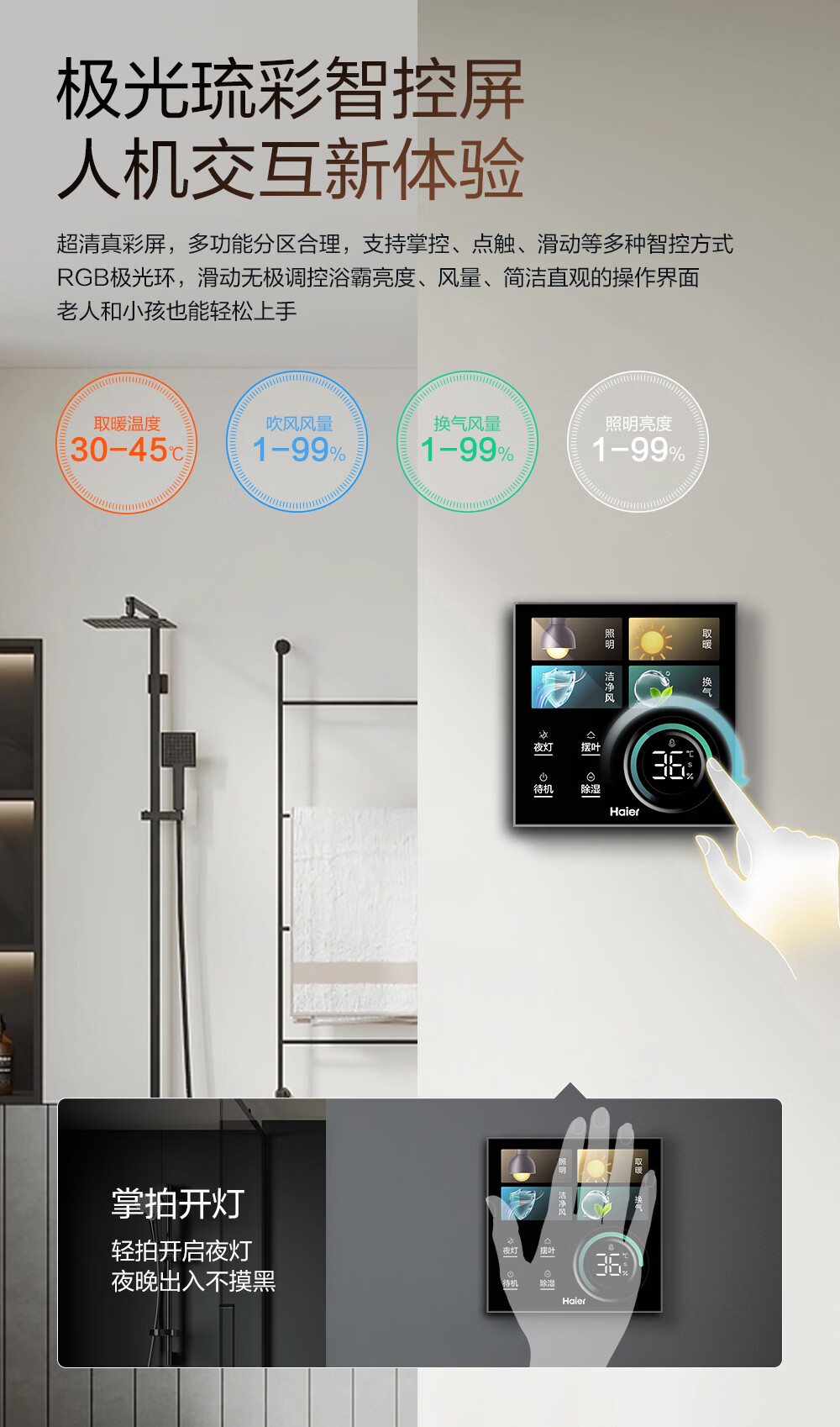 琉光环影彩屏尽享无界风采 智能除菌浴霸蒙德里安P10 海尔智能除菌浴霸HZX-P10-2924U1