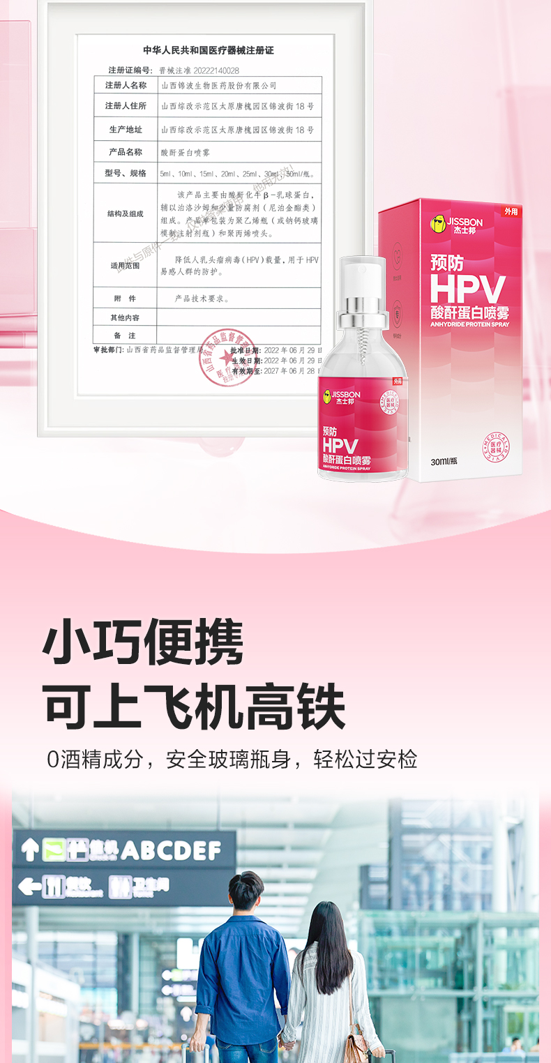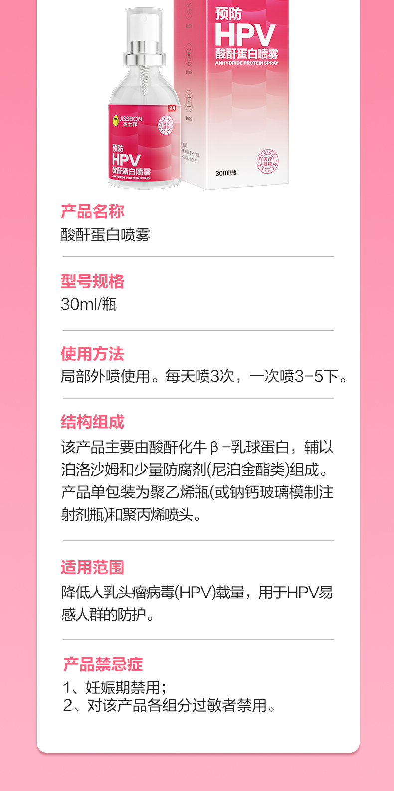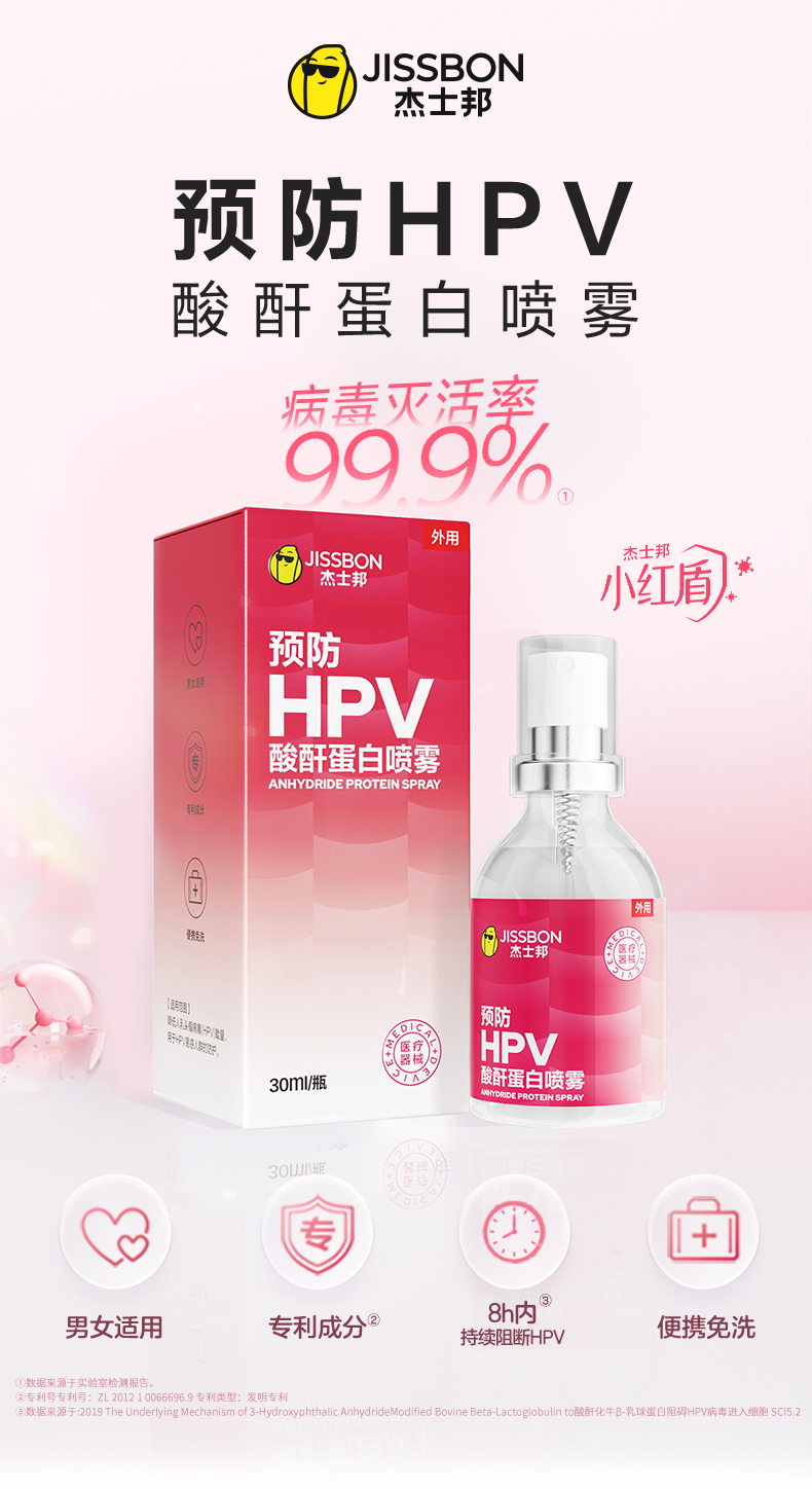杰士邦预防HPV酸酐蛋白喷雾(JAHP30)8小时内有效阻断