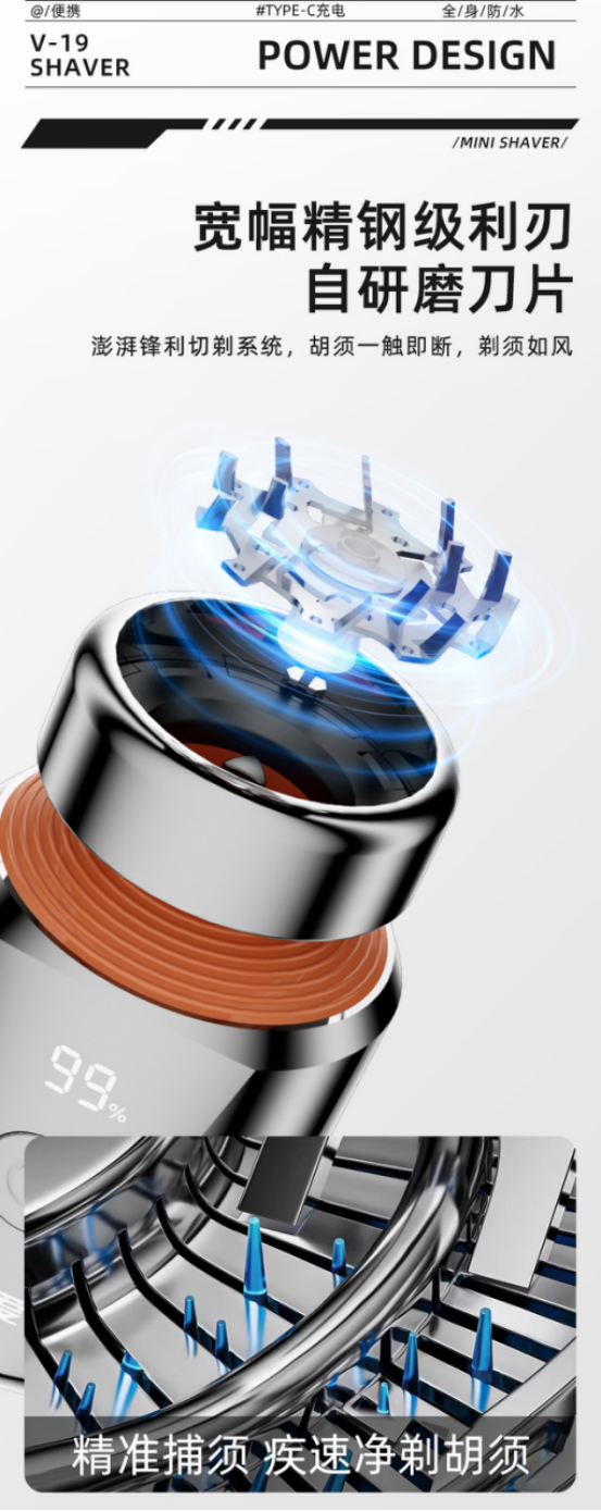 市面上有的剃须刀,总是剃不干净、拉扯胡须、需反复刮剃? 索爱这款MINI小蘑菇电动剃须刀V19,来啦~ 3D精钢浮动刀片,适应对各种难题死角 还有双环弧面刀网,刮得又快又干净