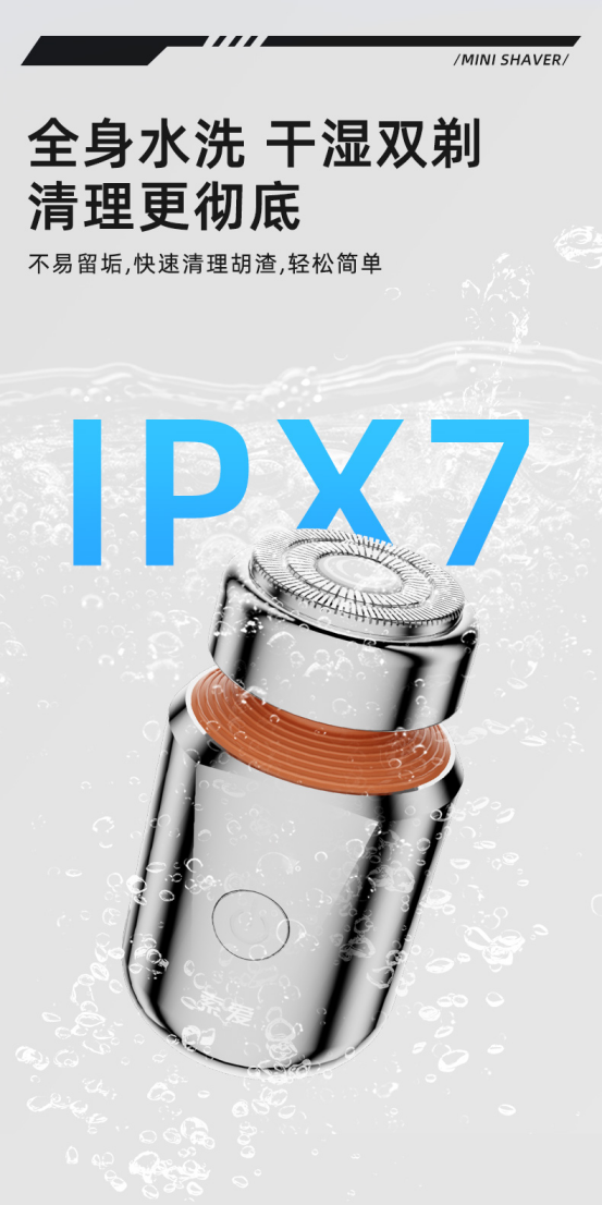 全机身IPX7防水 直接冲水就可以 便于清洗且不占空间