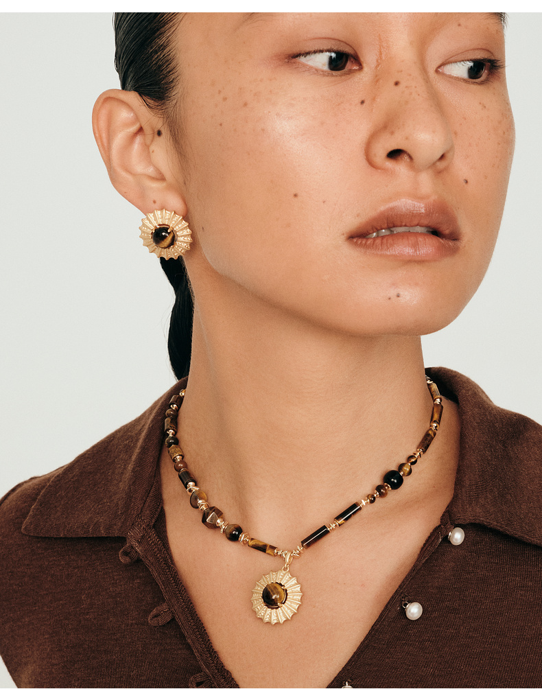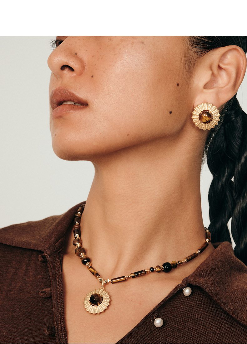 马君妍同款lost in echo早秋新款异域复古虎眼石玛瑙吊坠锁骨项链