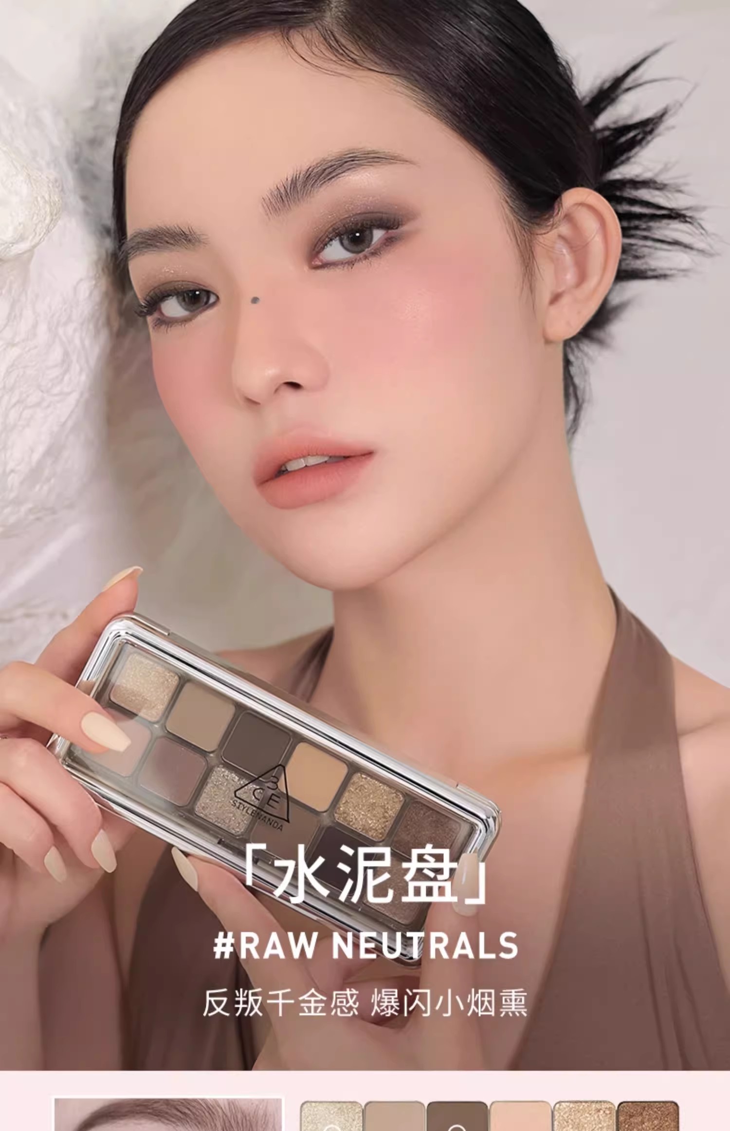 3CE 12色眼影盘【热卖色】#RAW NEUTRALS「水泥盘」大地色