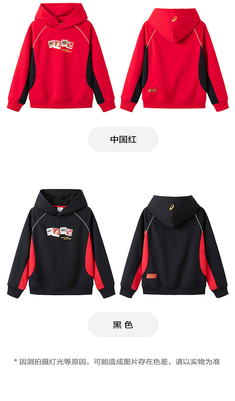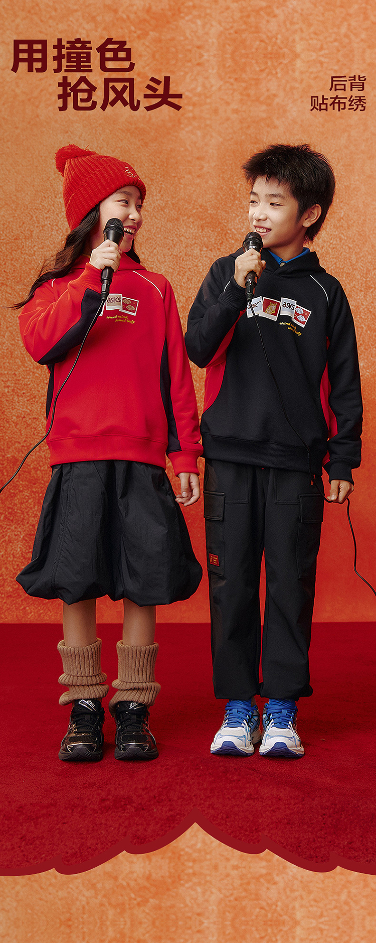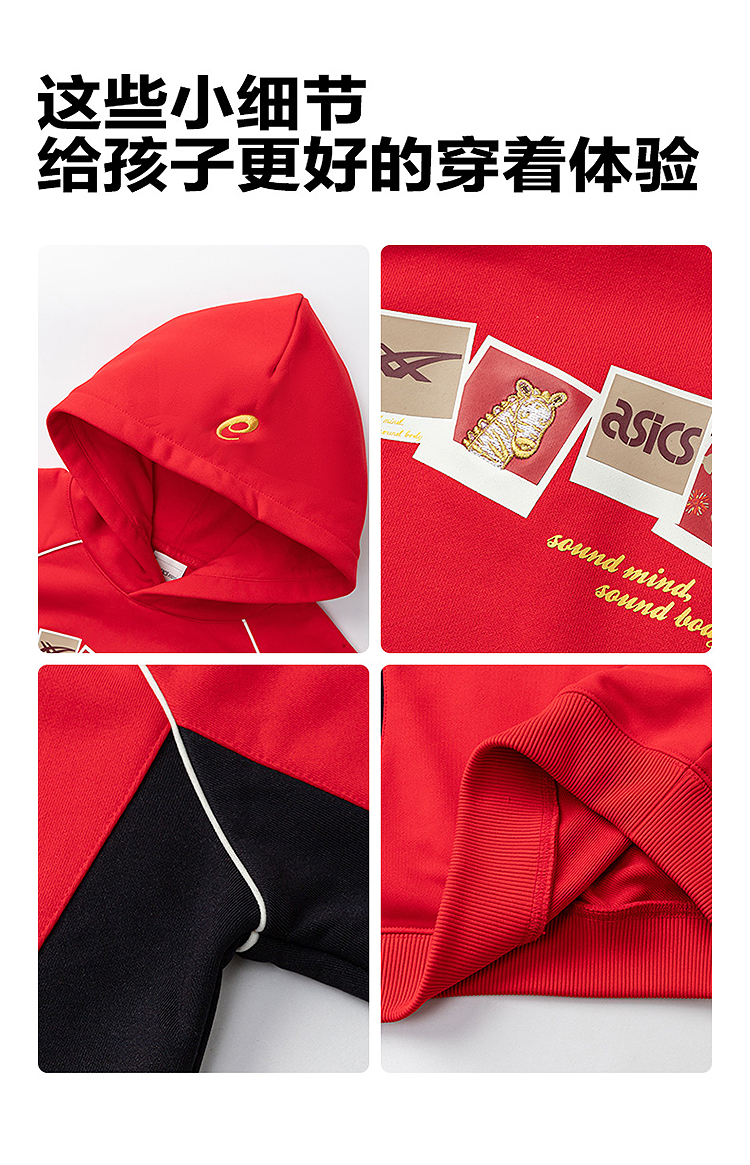 【商场同款】ASICS/亚瑟士儿童2026新年款撞色拼接连帽卫衣舒适