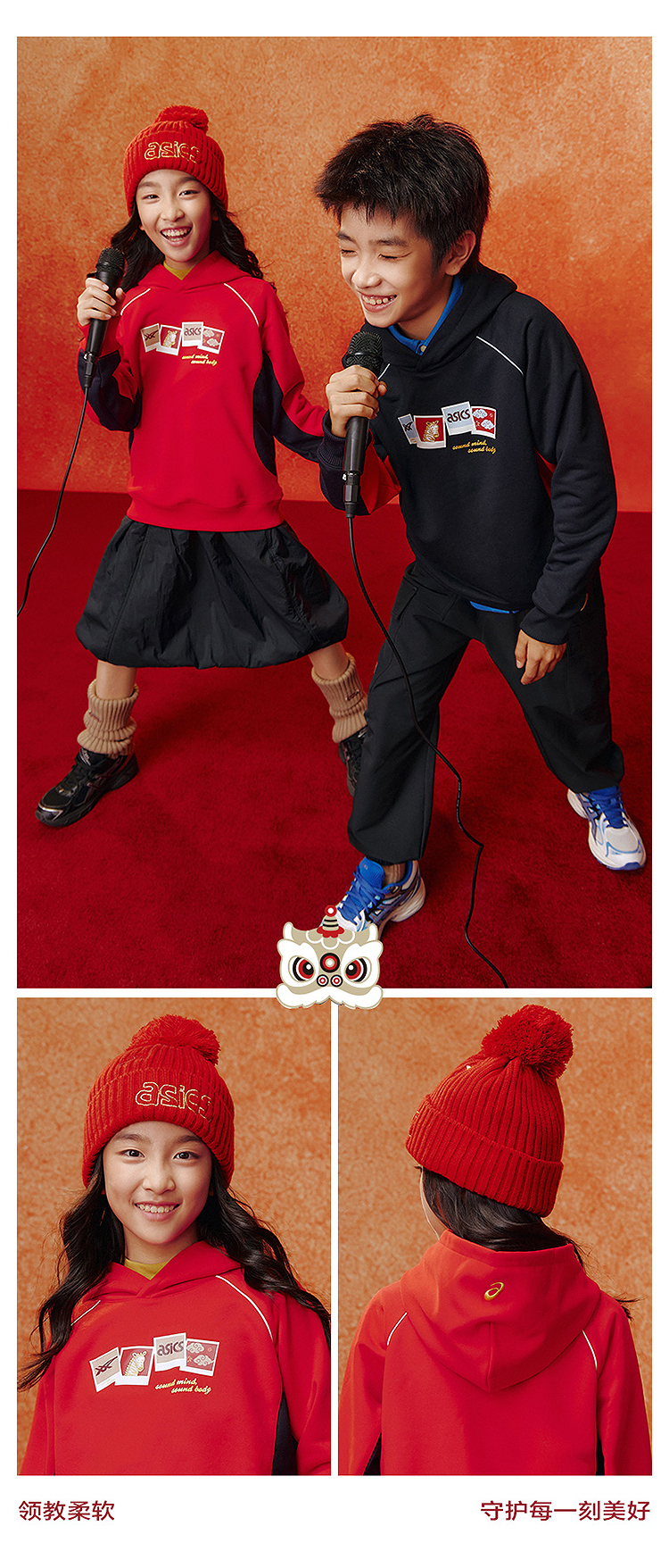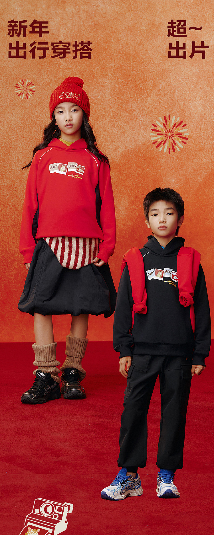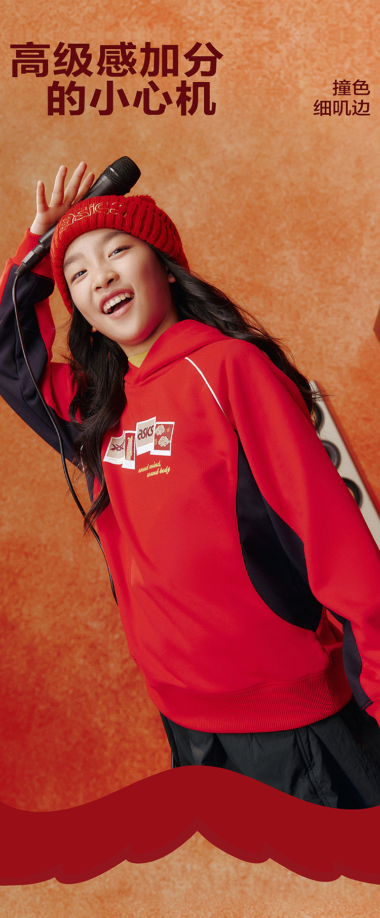 【商场同款】ASICS/亚瑟士儿童2026新年款撞色拼接连帽卫衣舒适