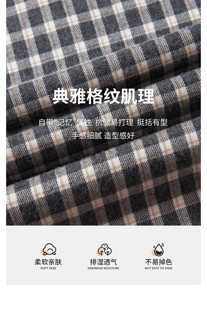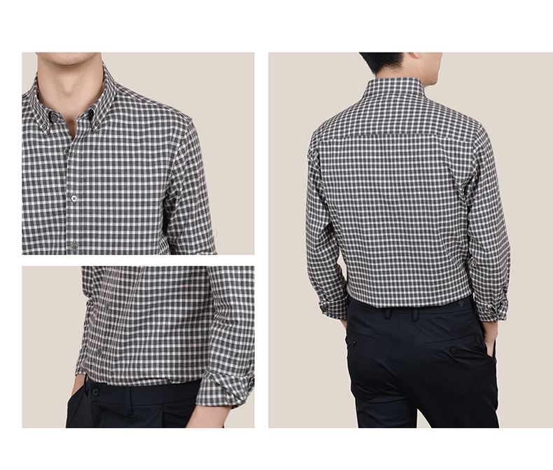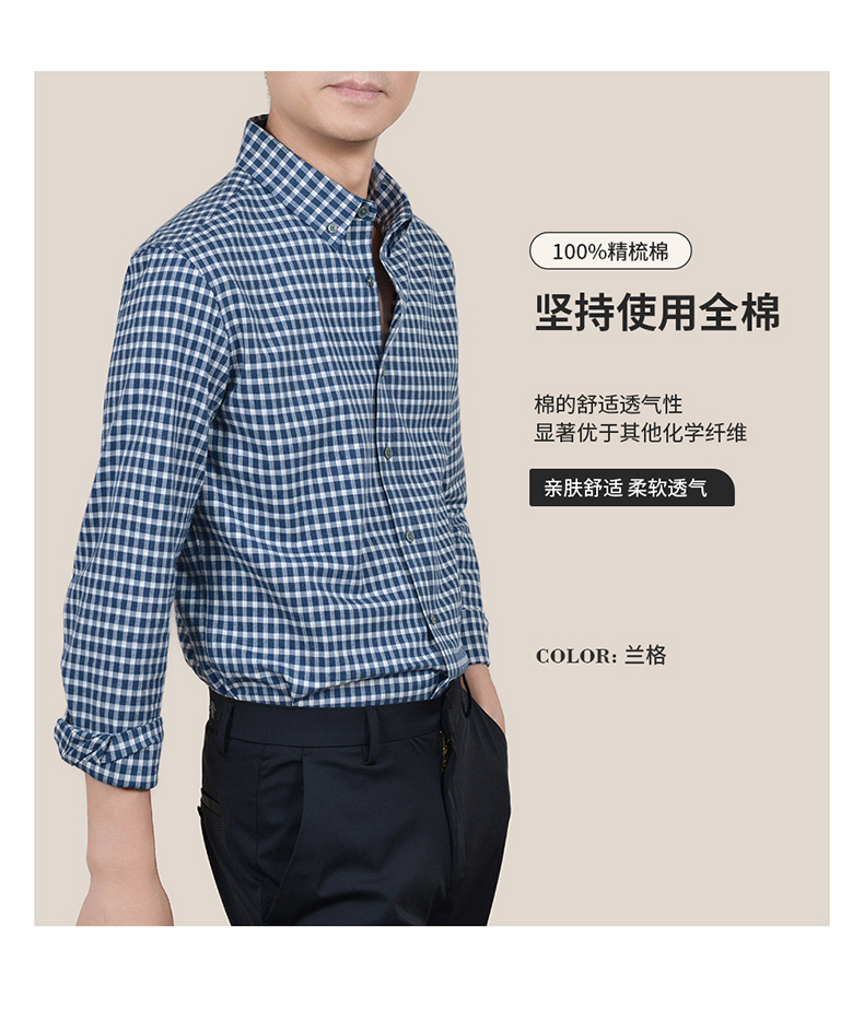 【100棉】罗蒙男士衬衫经典翻领细格百搭舒适长袖衬衫时尚通勤衬衣