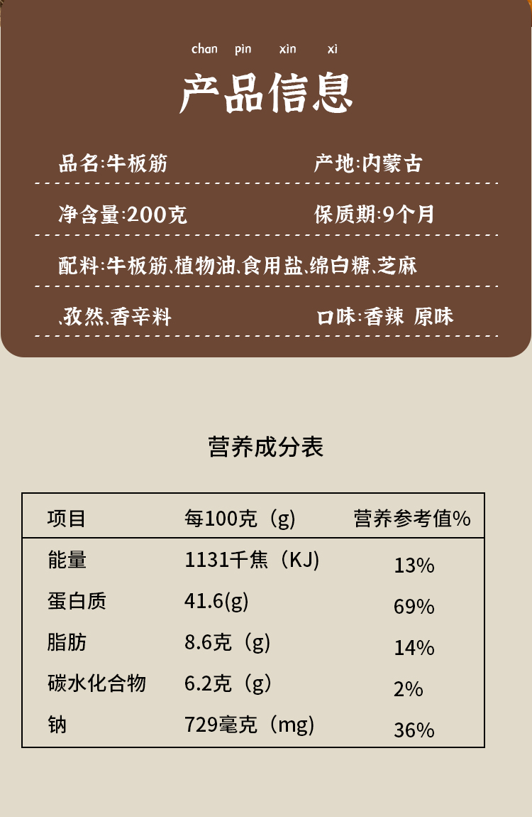 【越嚼越香❗️大片牛板筋手】牛板筋经过精准炖煮,保留弹韧嚼劲,咀嚼时肉香与香料香层层释放,耐嚼不柴,可作为下酒菜追剧零食下午茶解饿QQ