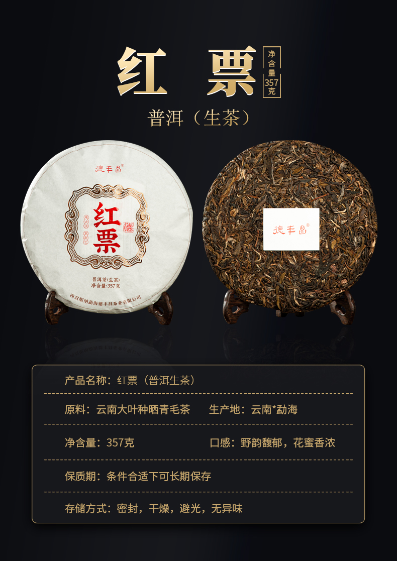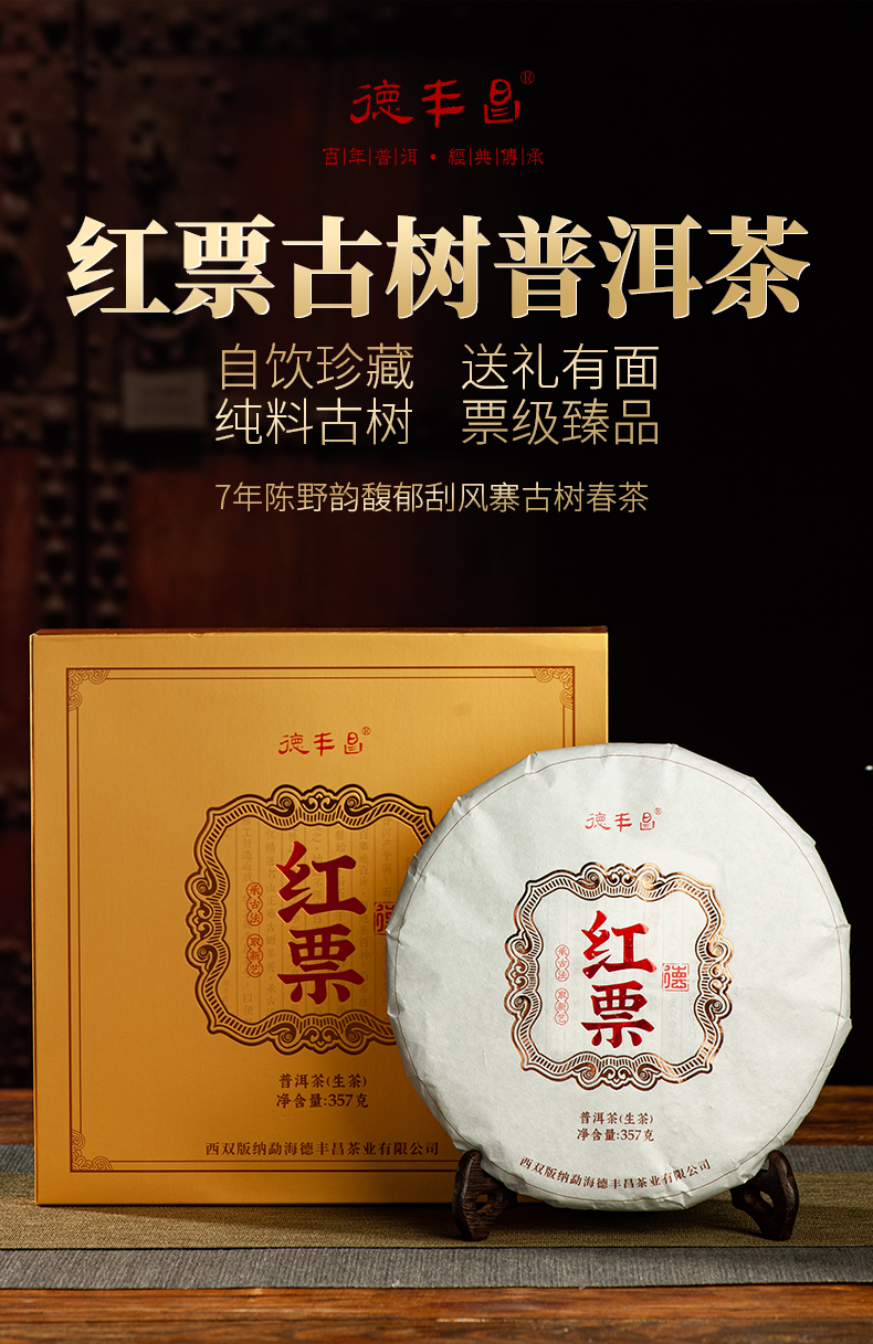 德丰昌7年老料【红票生茶】普洱茶357克/饼 易武茶区甜茶