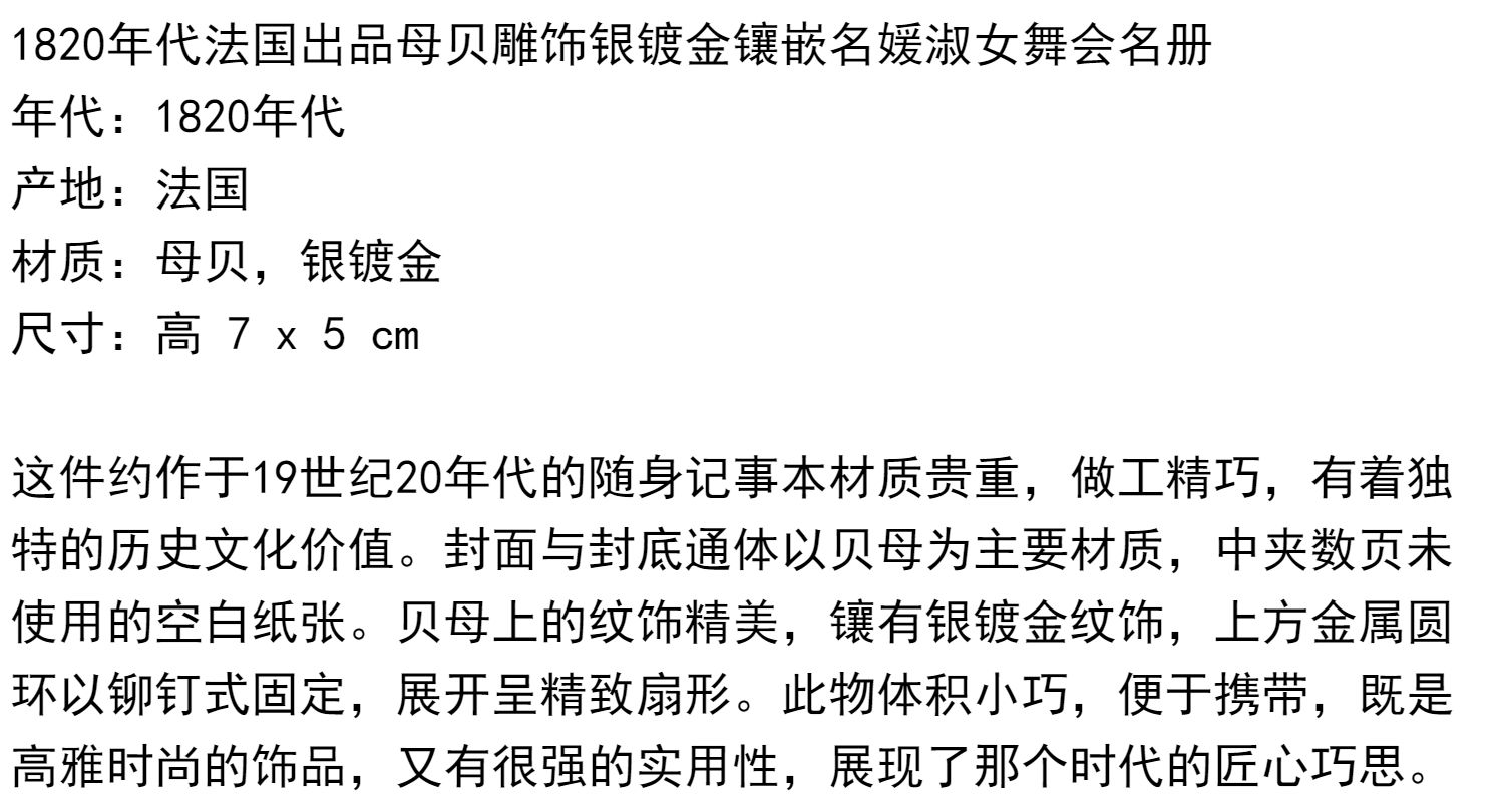 独角鹿西洋古董1820年代法贝雕饰银镀金镶嵌名媛淑女舞会名册