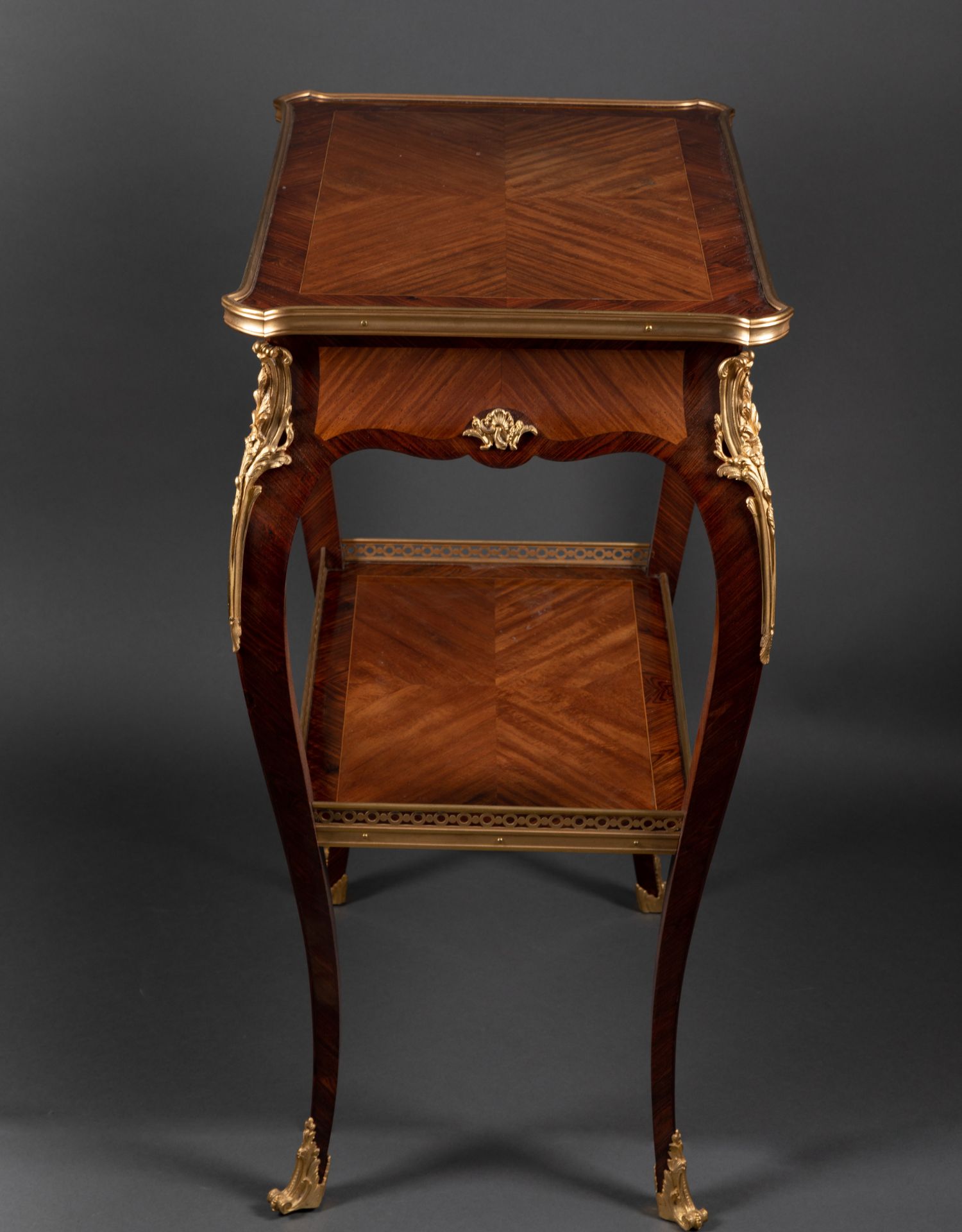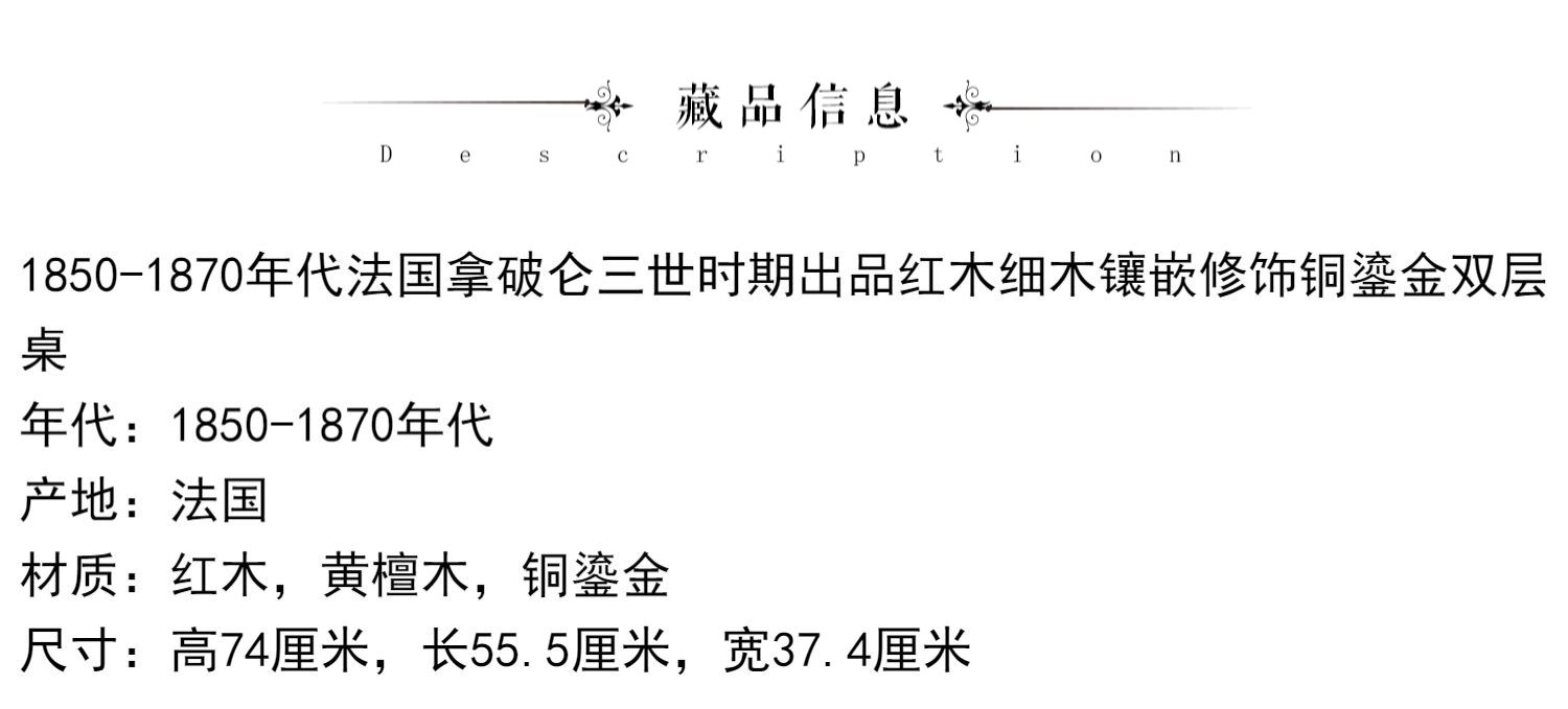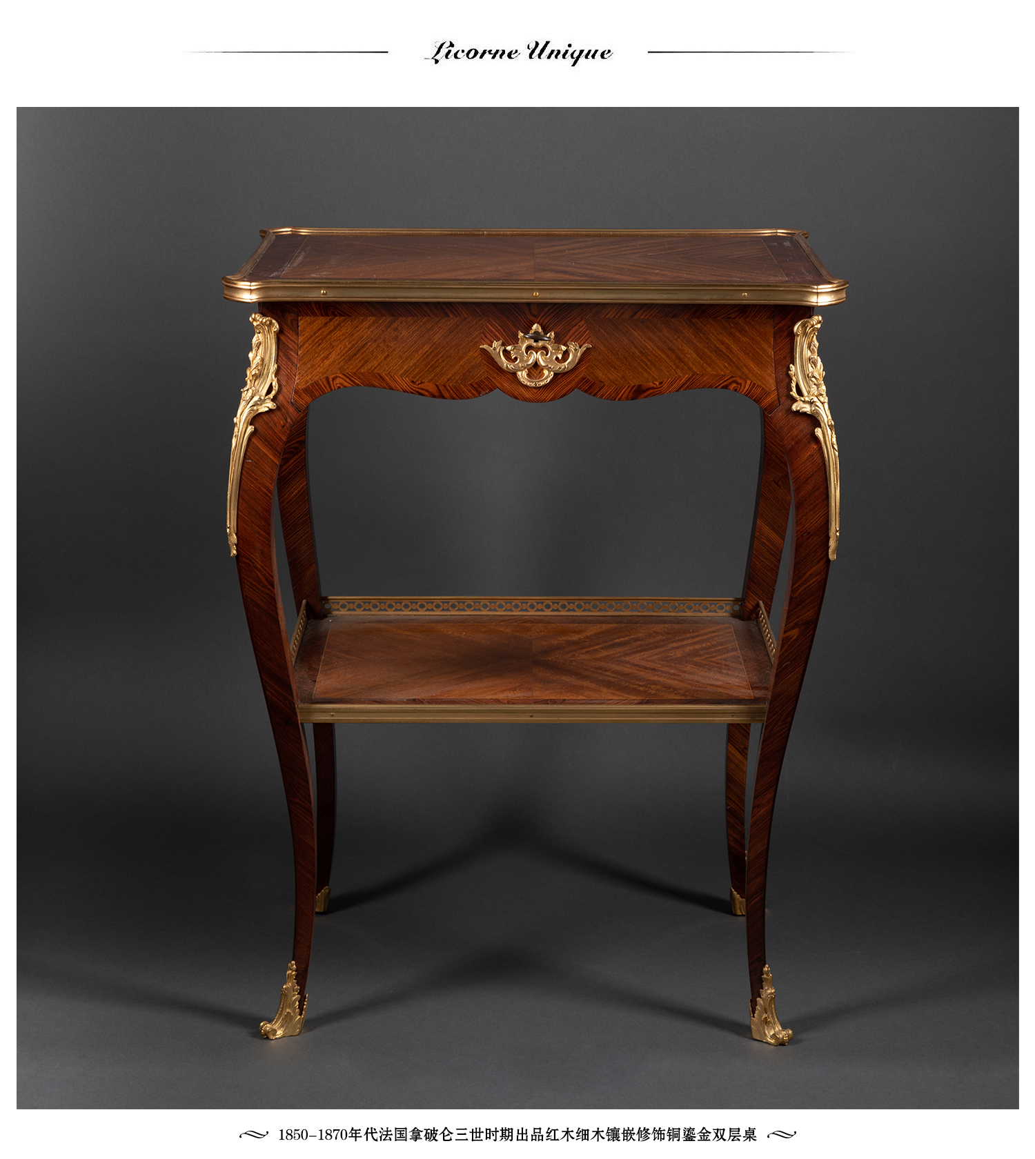 独角鹿西洋古董家具拿破仑三世时期红木细木镶嵌修饰铜鎏金双层桌