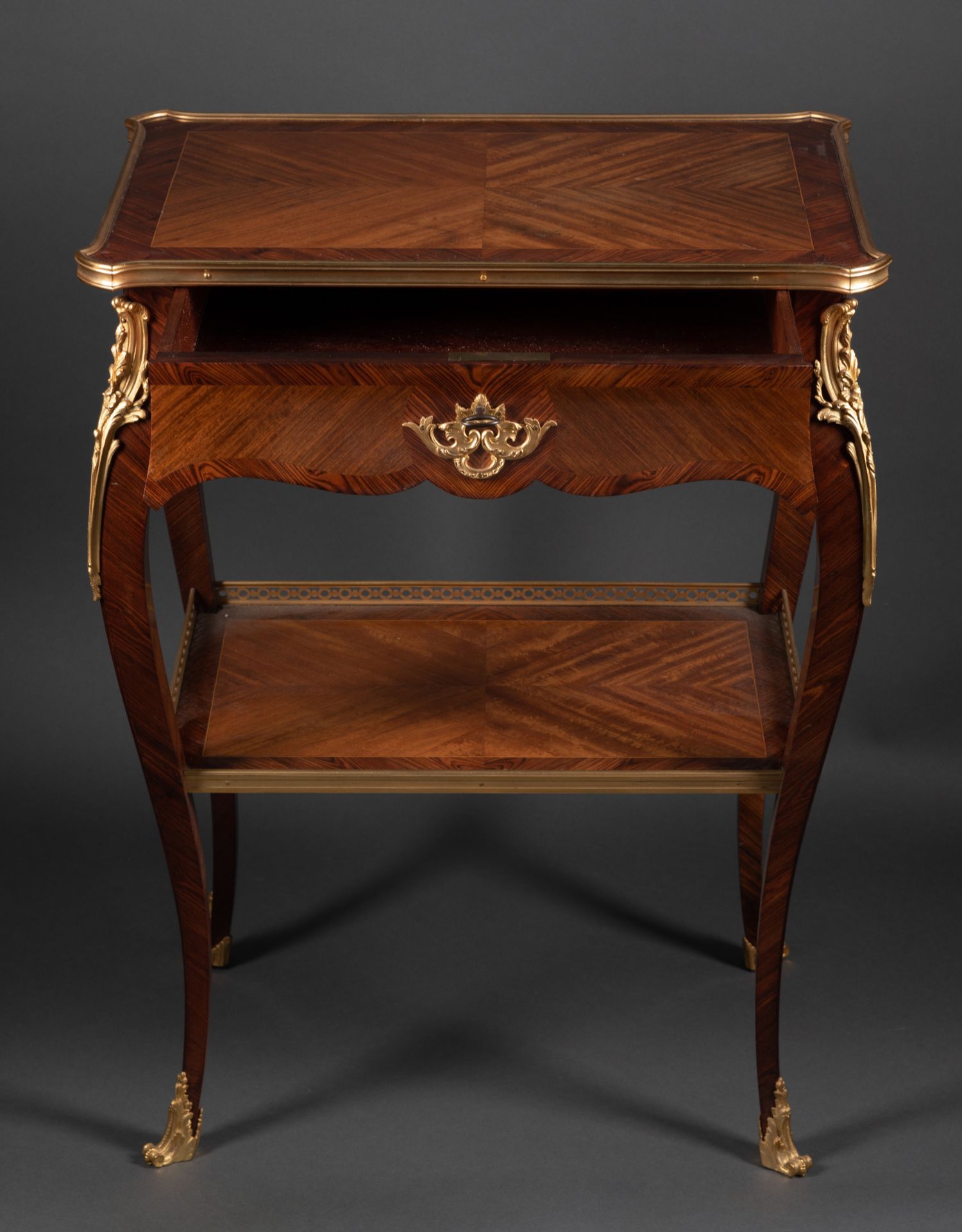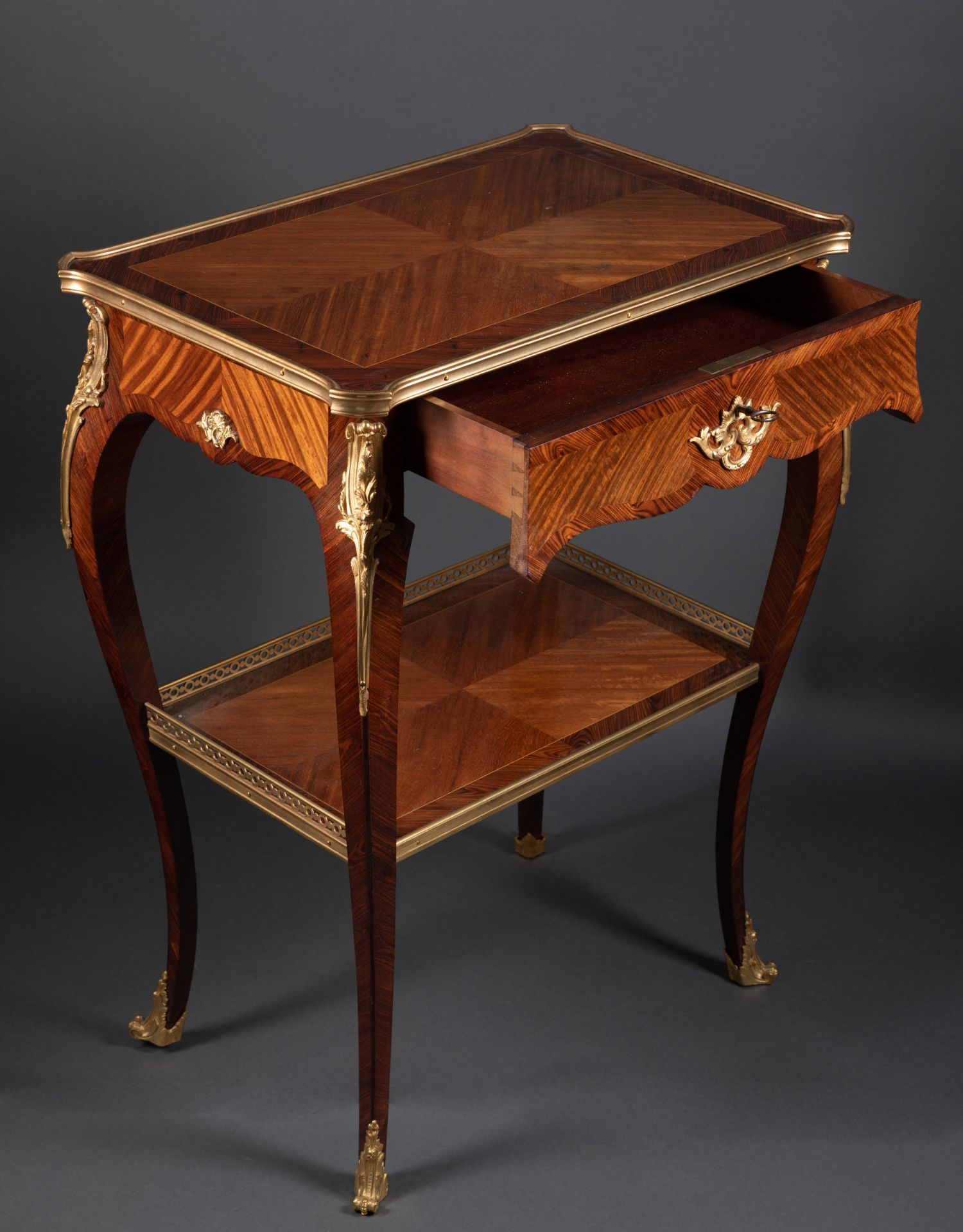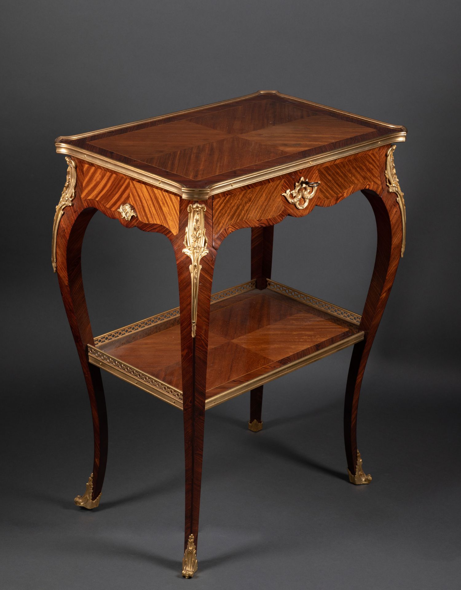 独角鹿西洋古董家具拿破仑三世时期红木细木镶嵌修饰铜鎏金双层桌