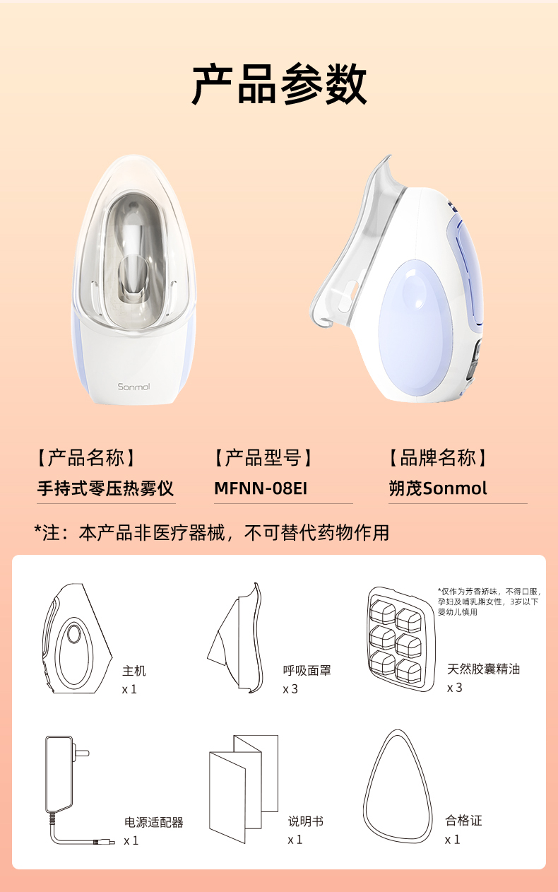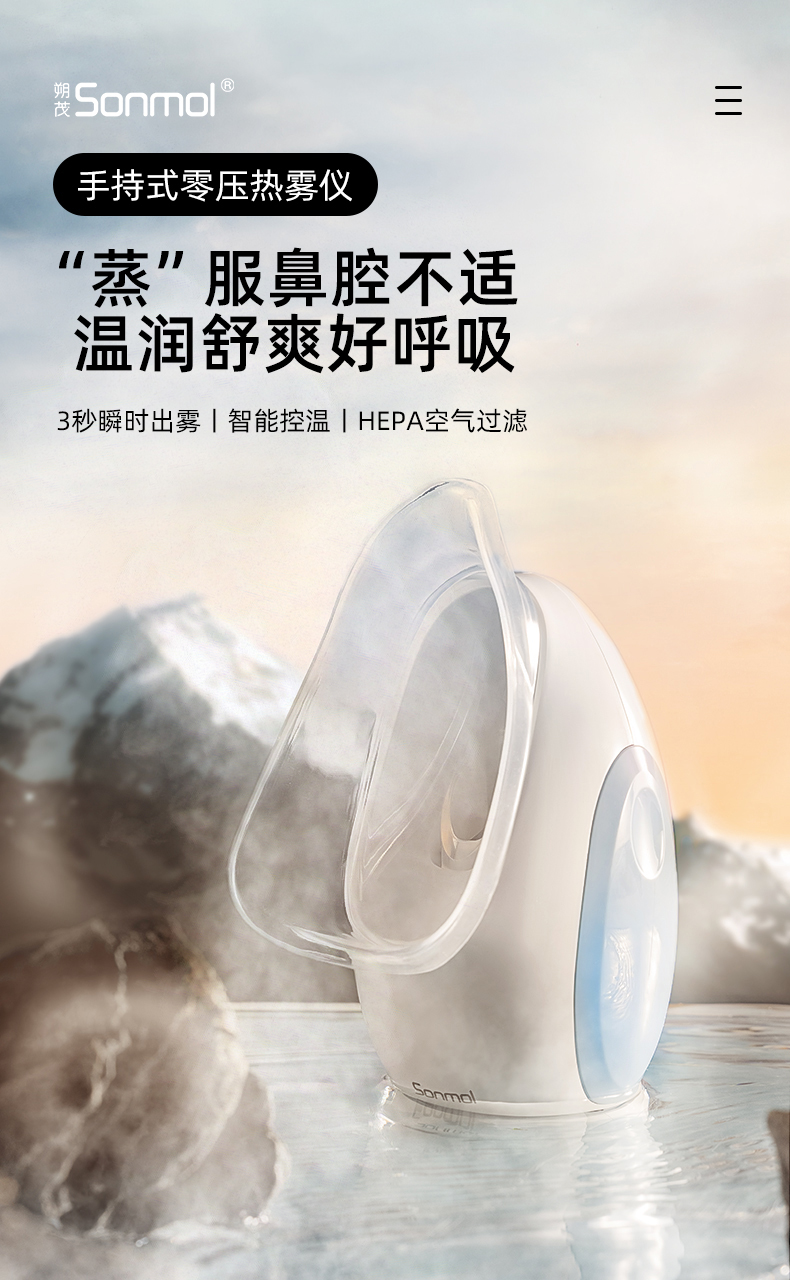 朔茂Sonmol手持式零压热雾仪 蒸汽精油护鼻 缓解鼻塞鼻痒不通气 成人儿童鼻腔护理
