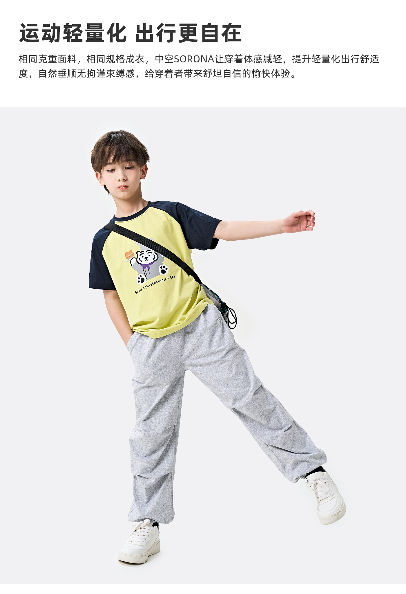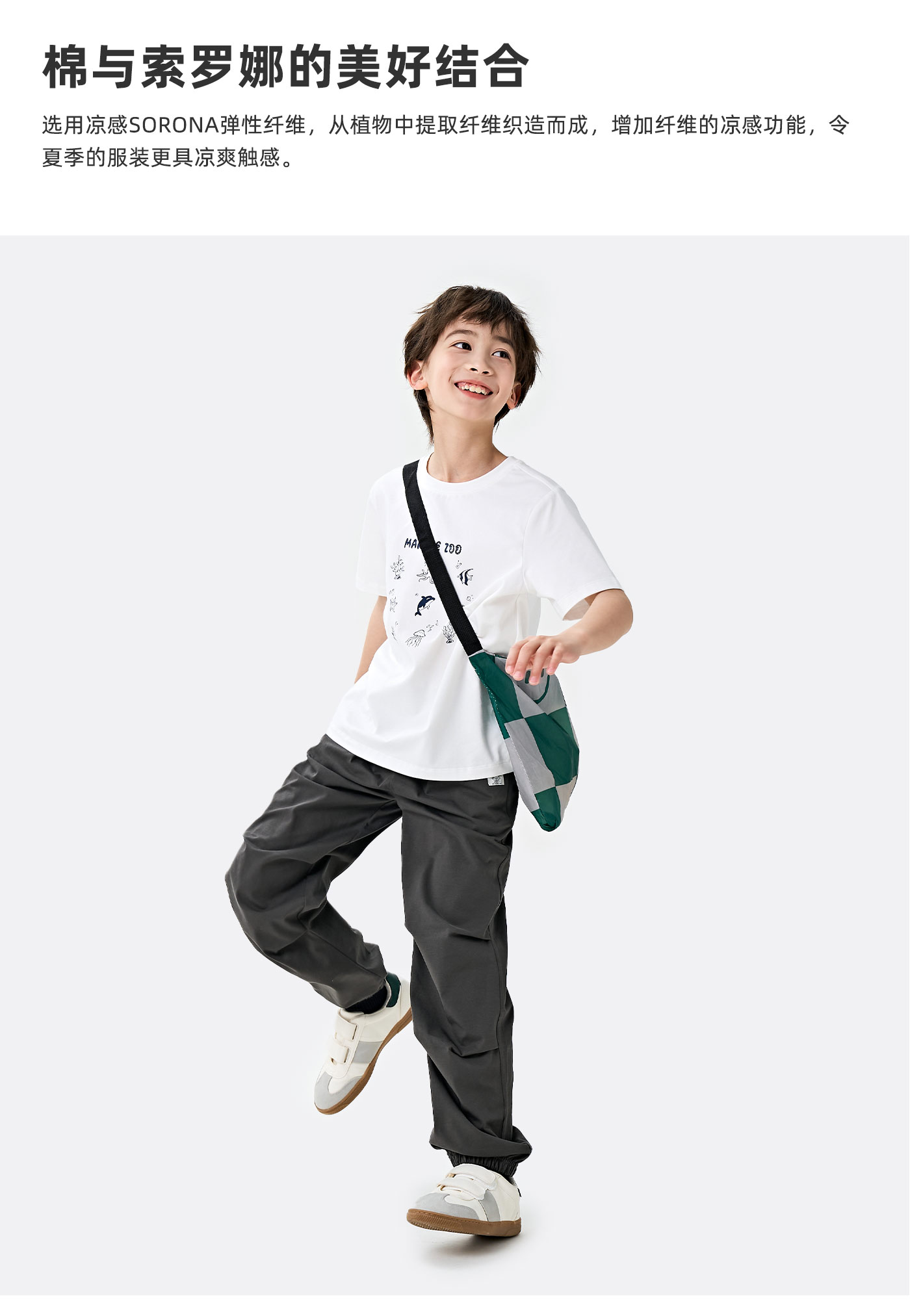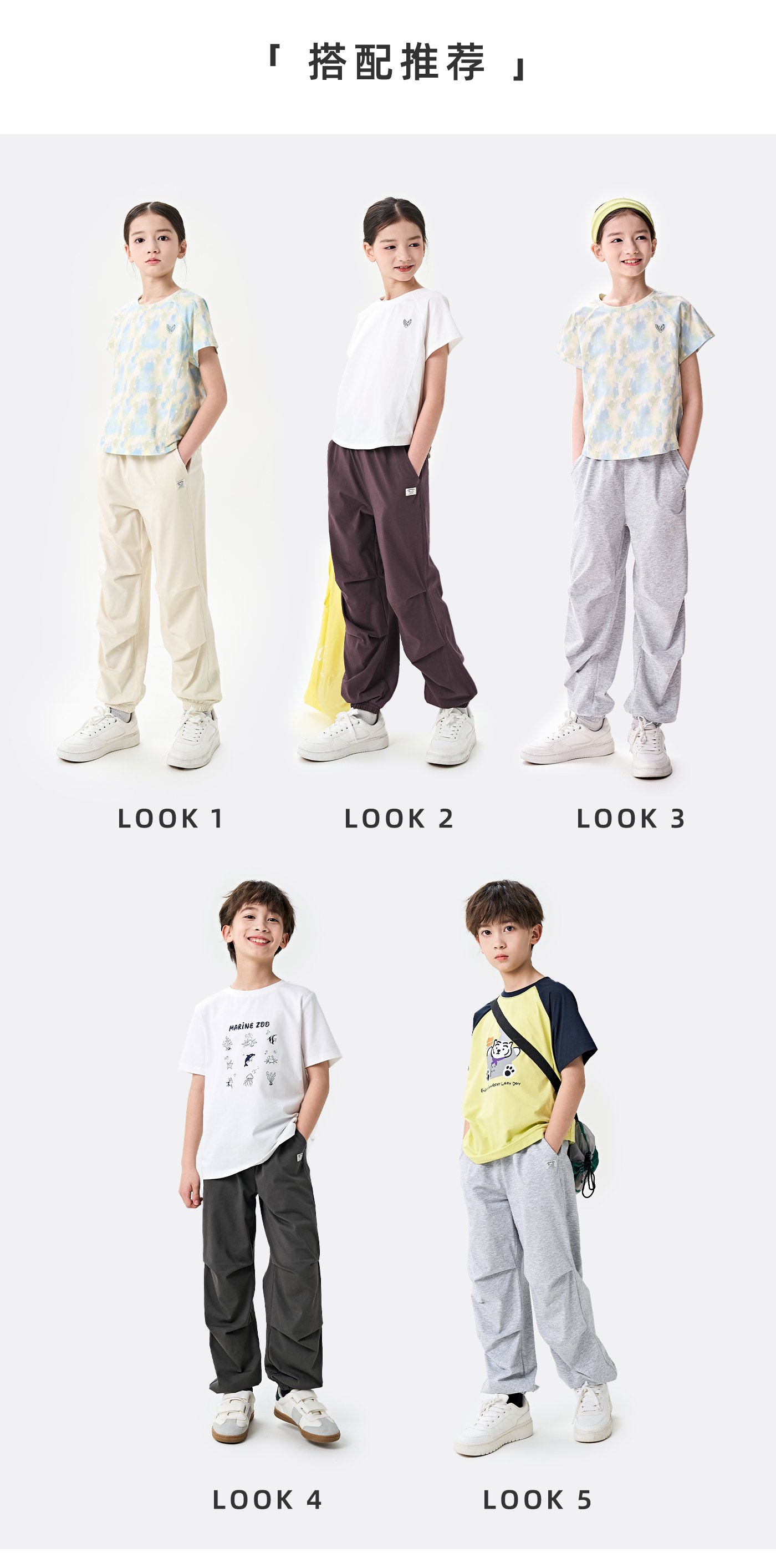 棉叔叔儿童宽松收脚口降落伞裤363118003 | 面料亲肤柔软、微宽松版型设计、包容性强、舒适休闲