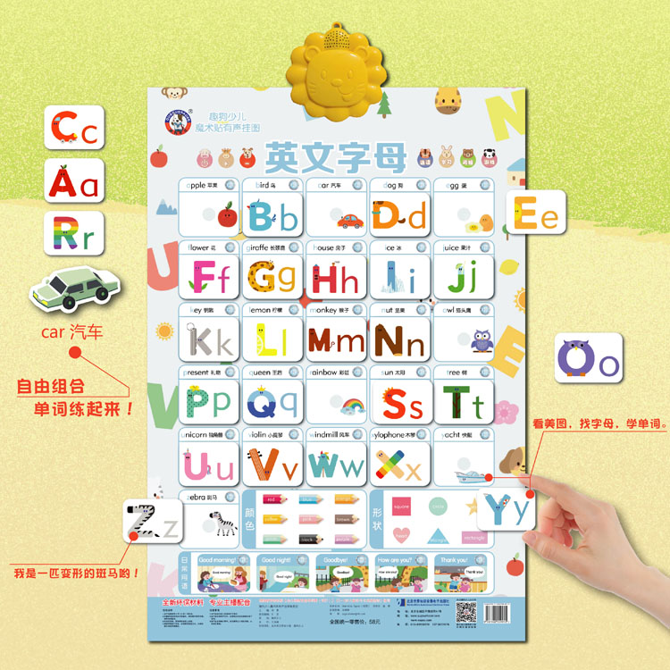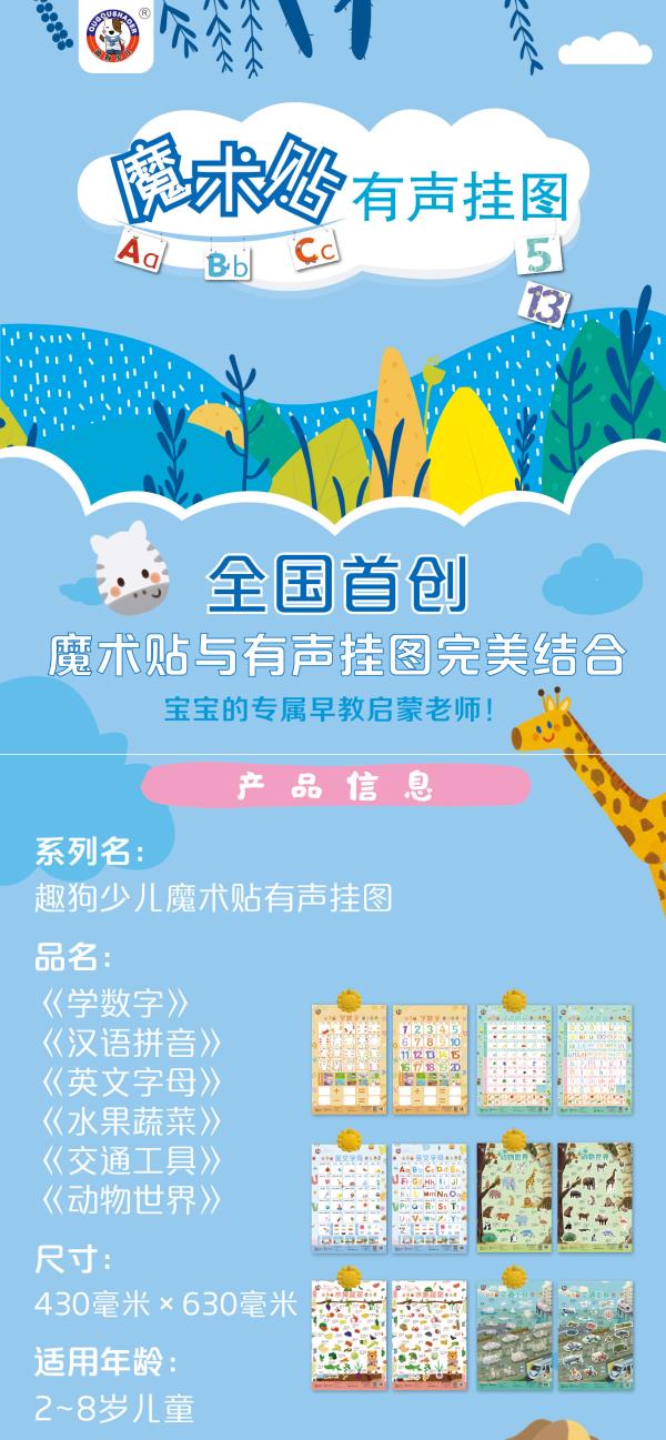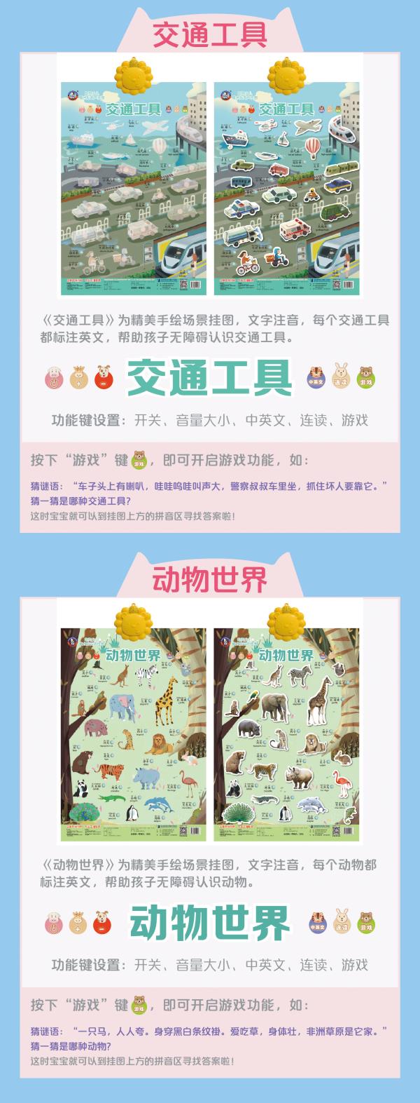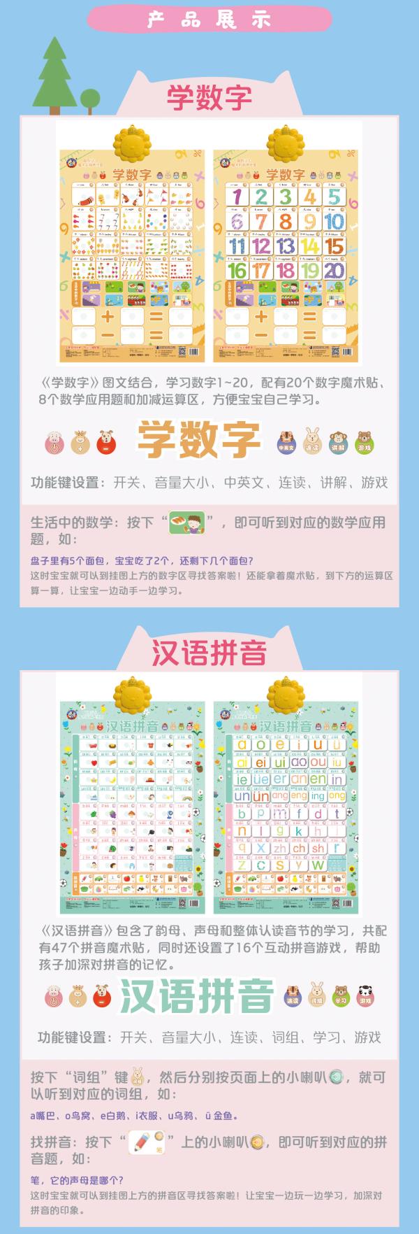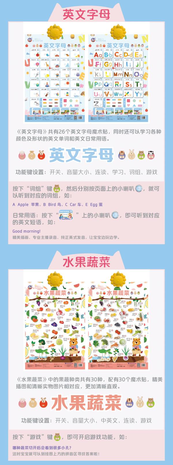 【8种任选有声挂图】学汉语拼音垃圾分类男生女生保护学数字英文字母交通工具水果蔬菜 动物世界 0-3岁儿童宝宝早教启蒙认知魔术贴