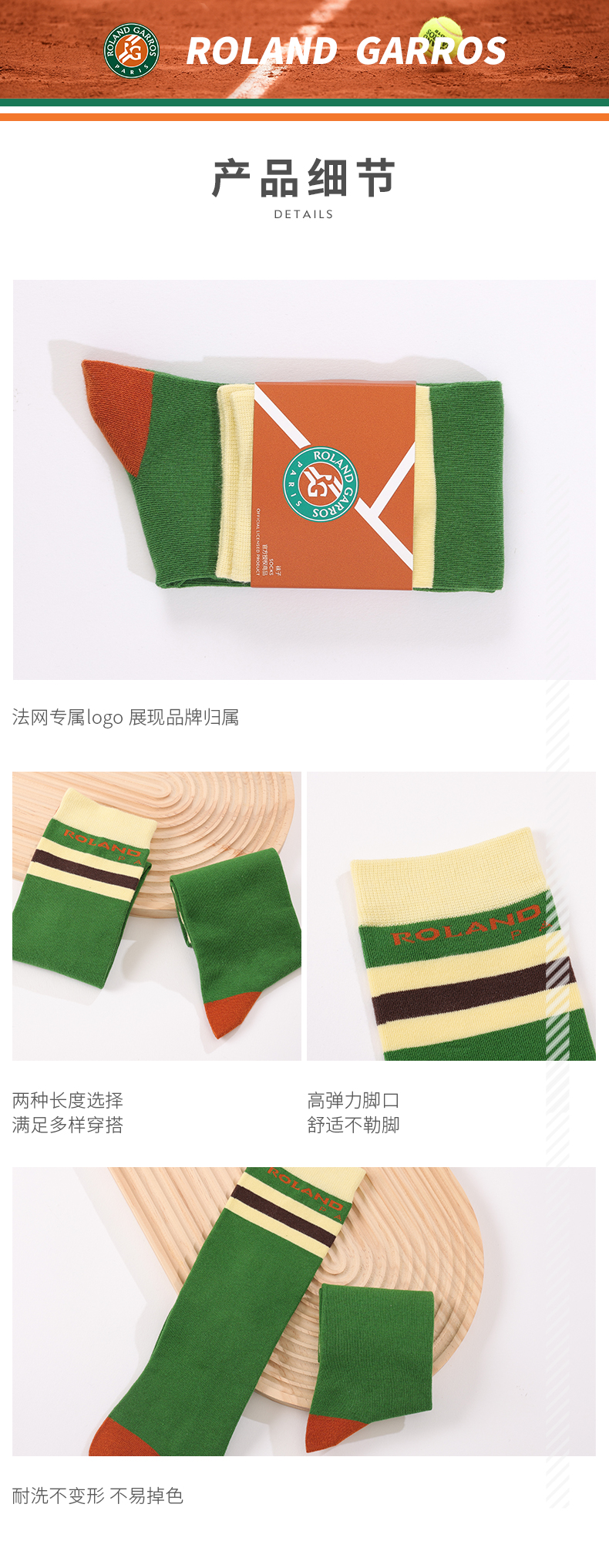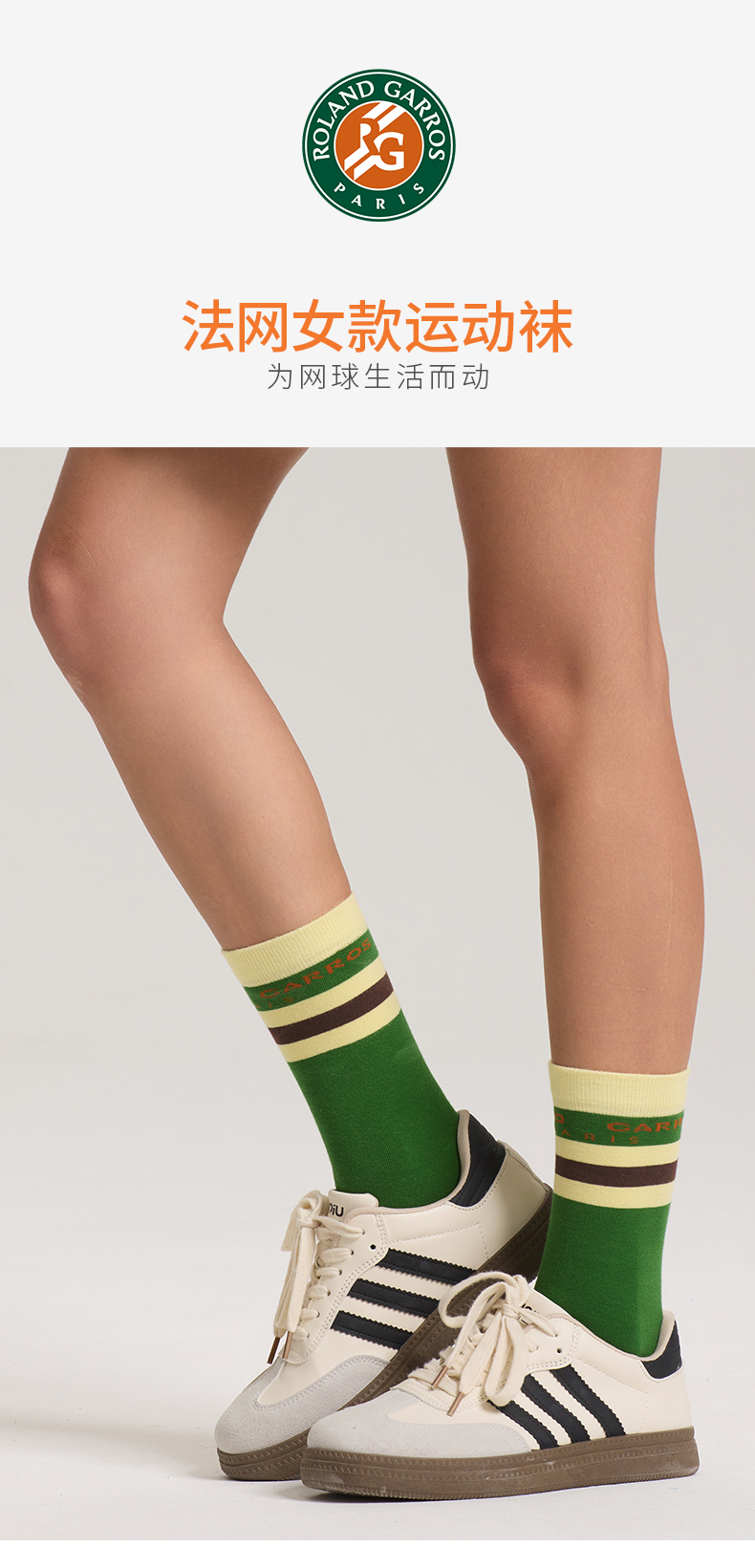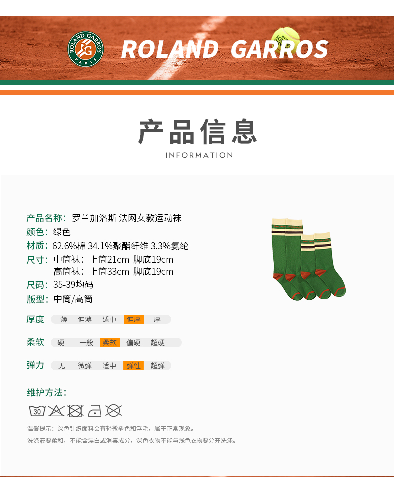 罗兰加洛斯法网长筒袜女新款网球运动袜休闲高筒袜小腿袜