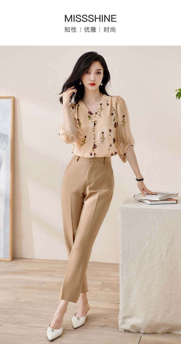 米思阳新款职业套装西裤+上衣女通勤气质洋气舒适优雅5M25BG3895