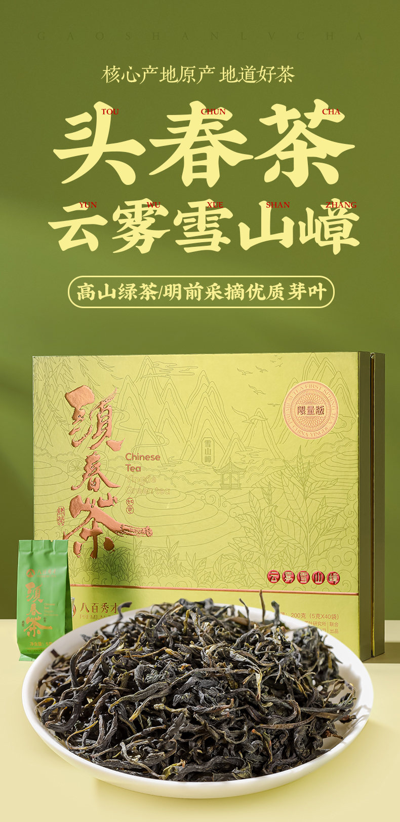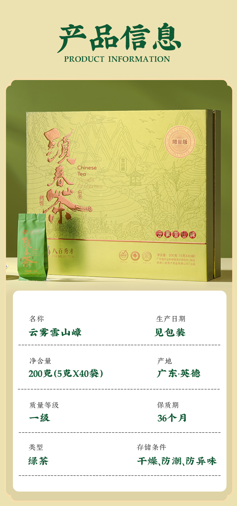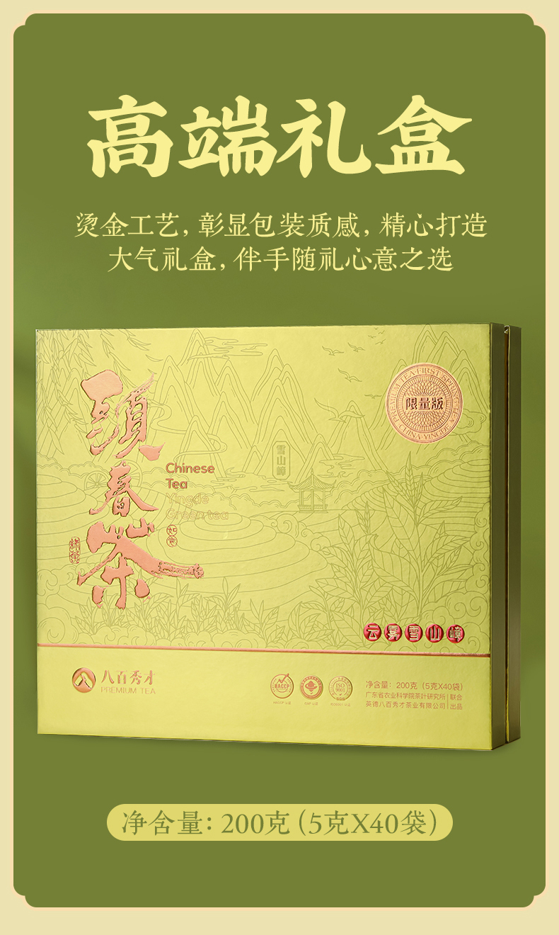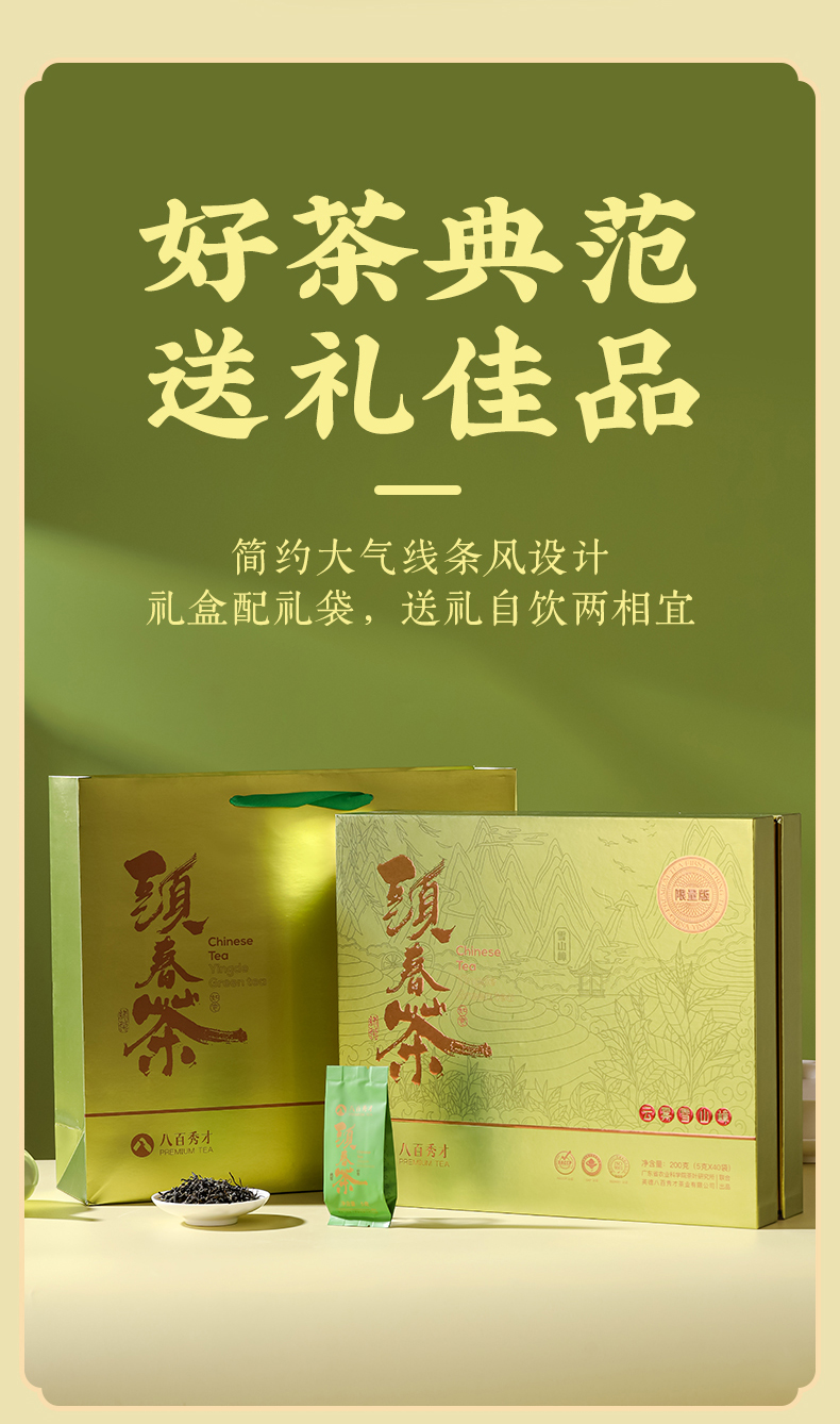 【明前头春茶】八百秀才正宗英德绿茶礼盒装200g