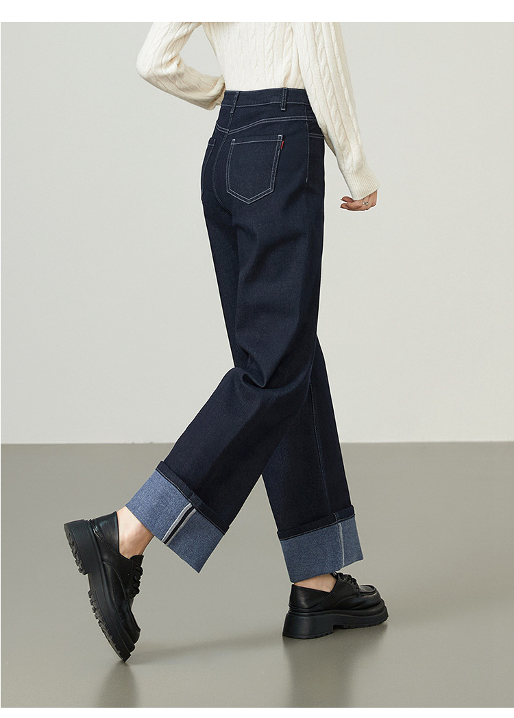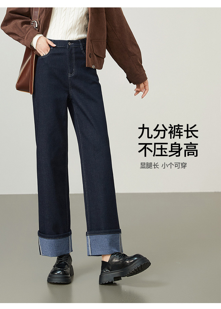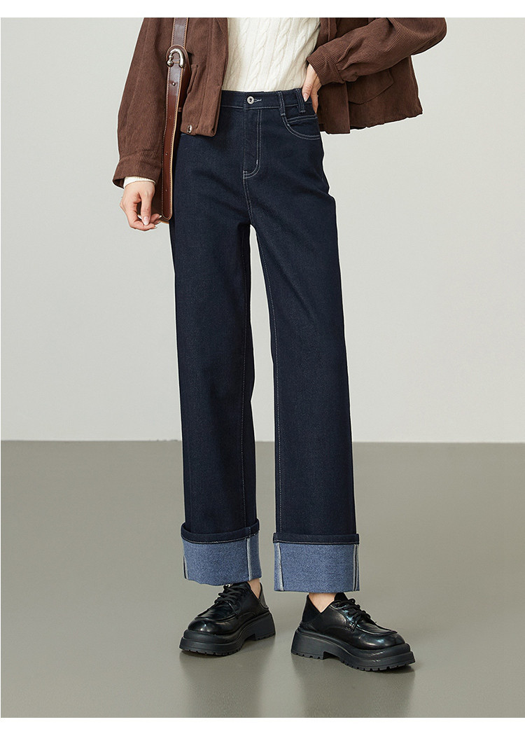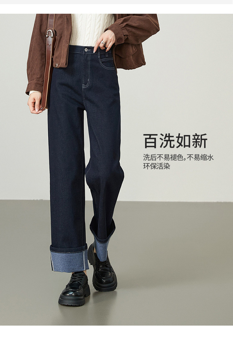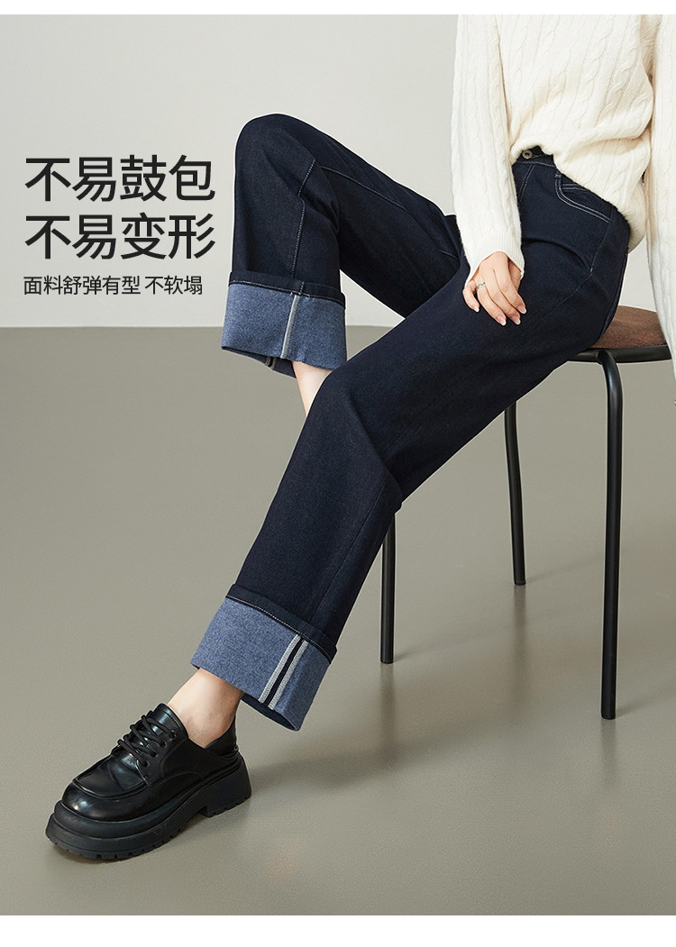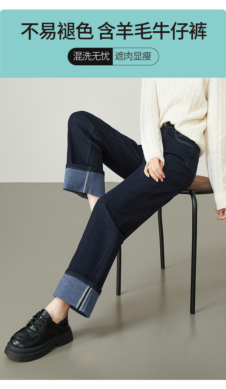 【厚款-羊毛牛仔】逸阳秋冬新品不易褪色脚口翻遍两穿直筒裤8290