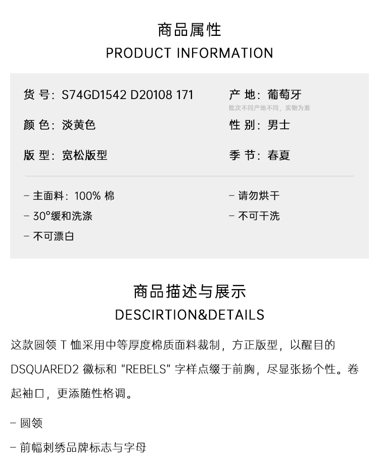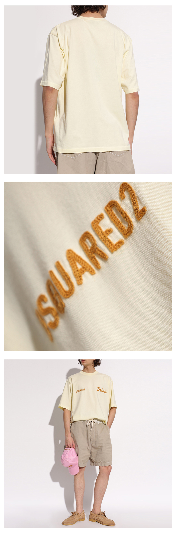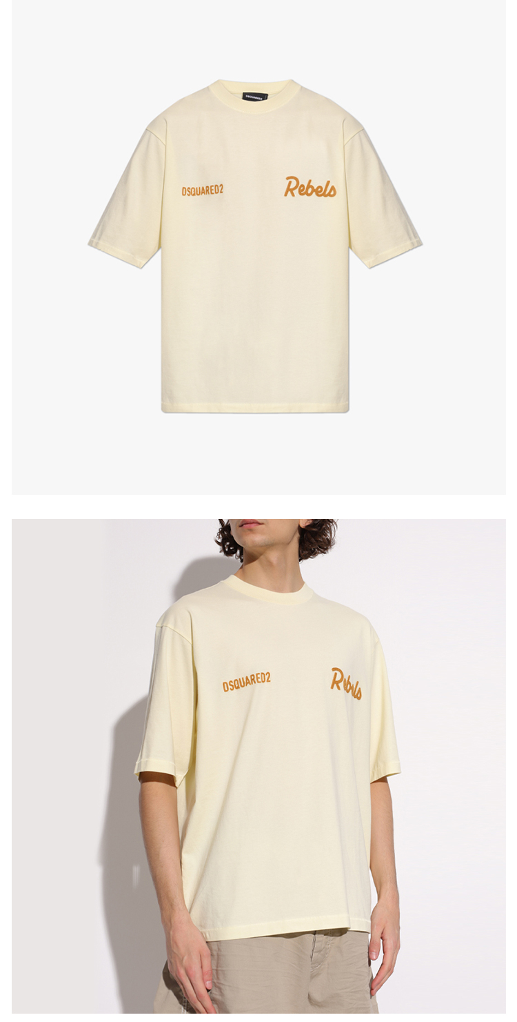 DSQUARED2 男士字母徽标刺绣棉质圆领短袖T恤 淡黄色 S74GD1542 D20108 171