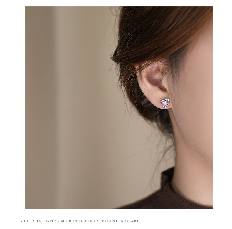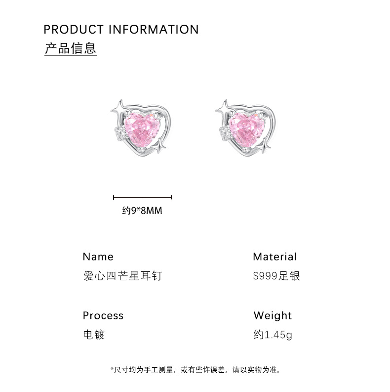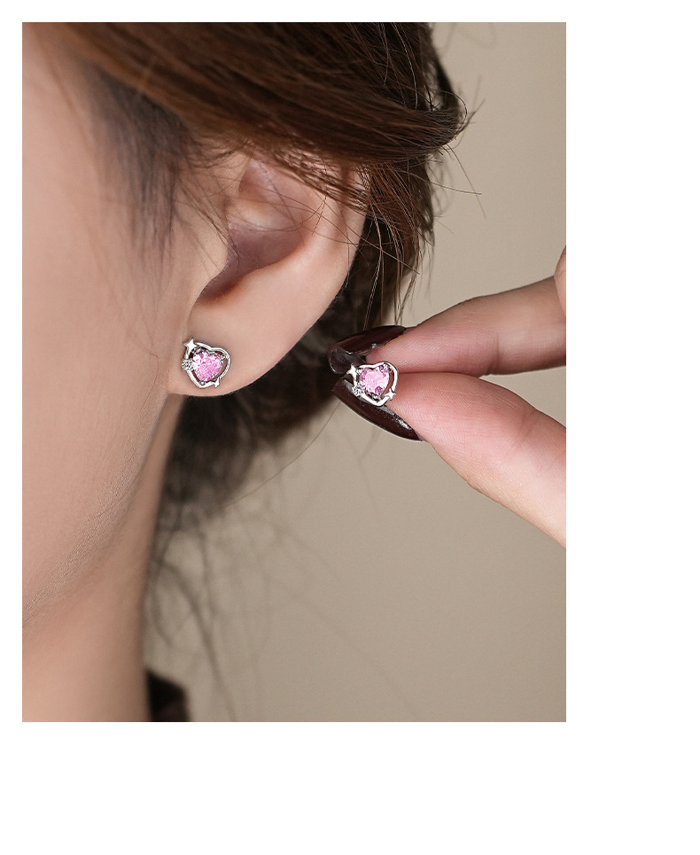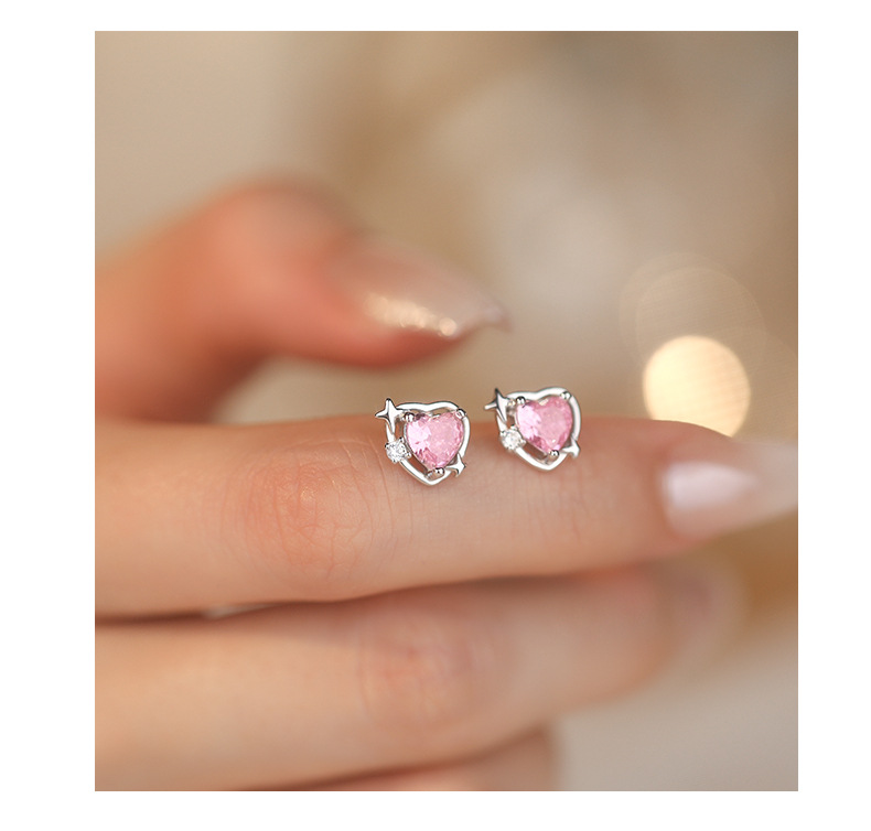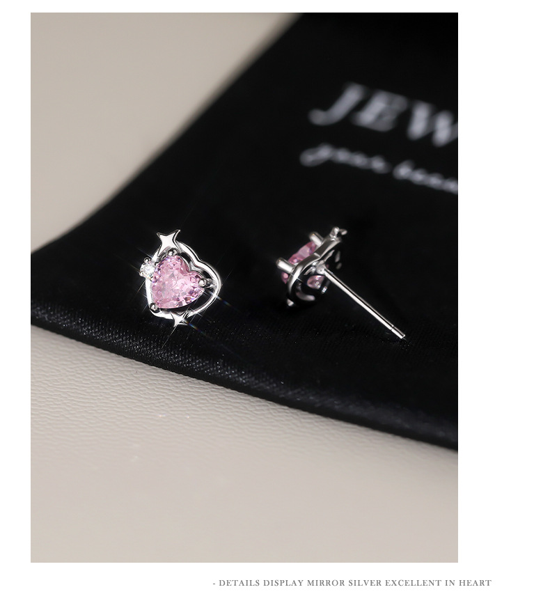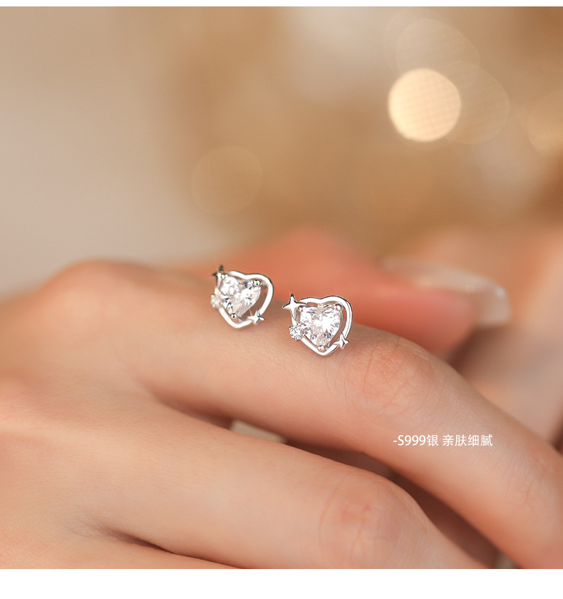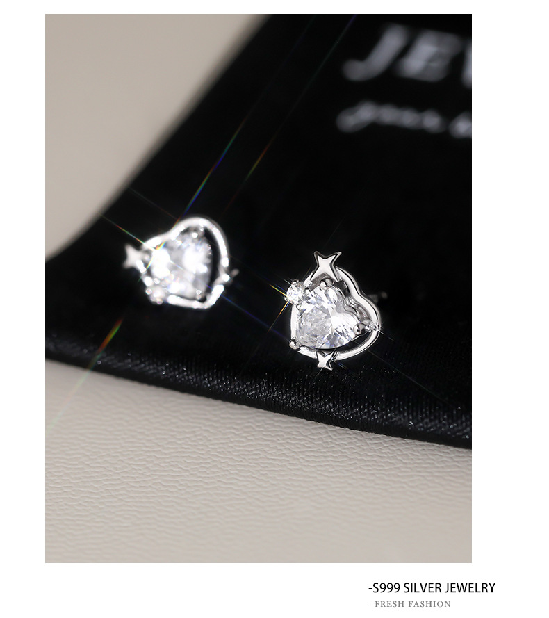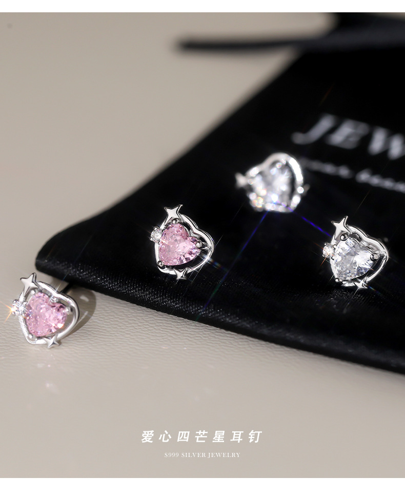 【四芒星】s999纯银爱心锆石耳钉【YXS-E5326】