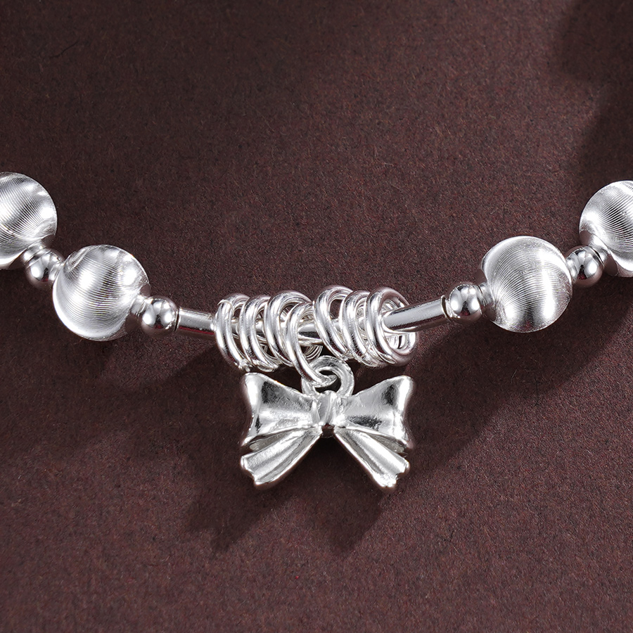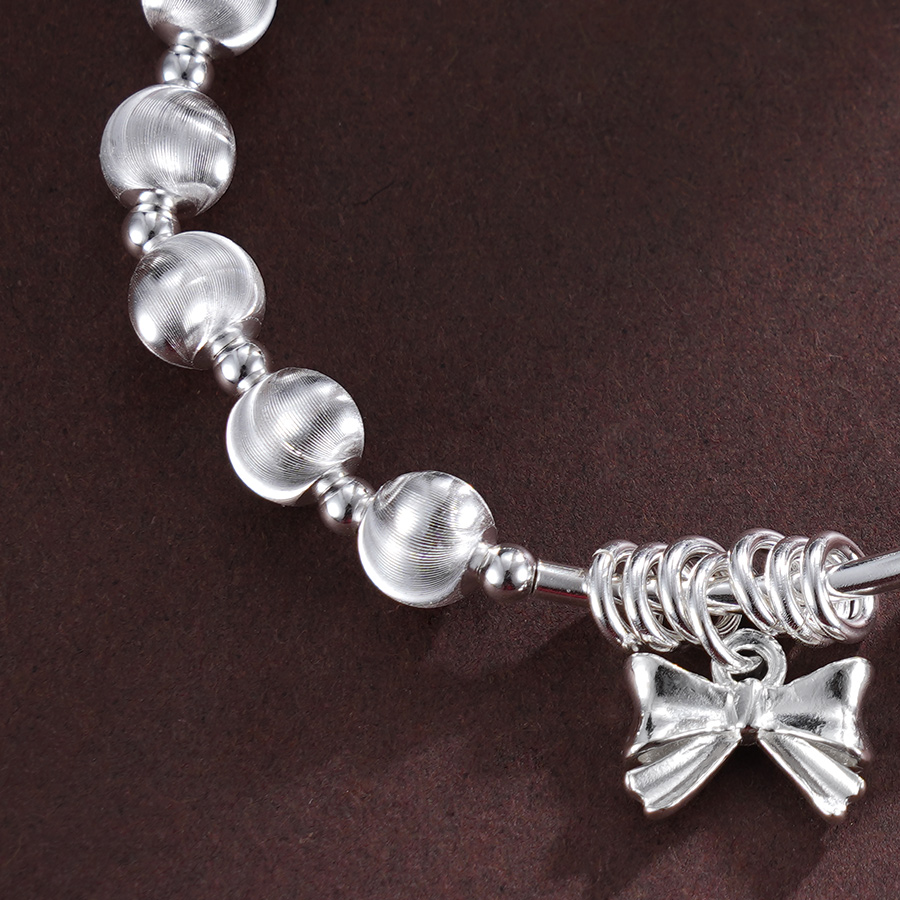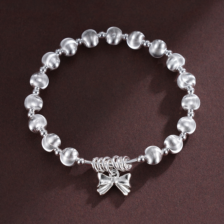 【寓意】:手串拉丝圆珠设计,融入蝴蝶结元素,清雅静妙,灵动美好。作品取名“情意结”,寓意表达情意,永结同心。