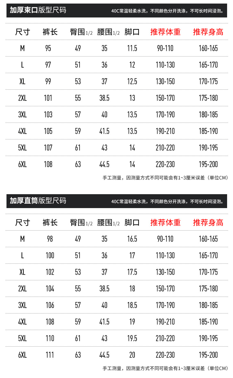 情侣款加绒长裤(平口/束口)