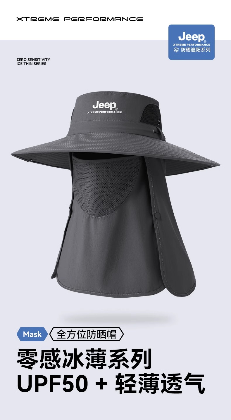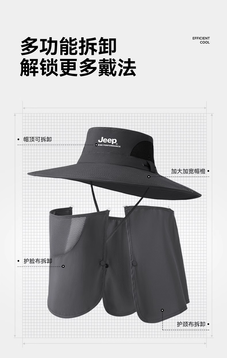 jeep吉普多功能渔夫帽可拆卸透气速干db408