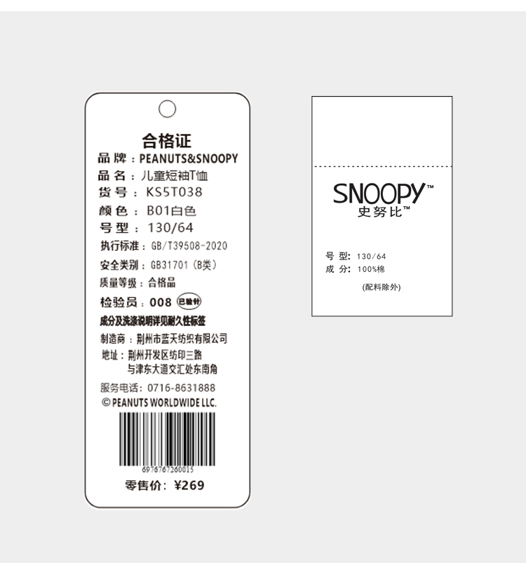 【130-170】【史努比】男童夏款时尚短袖t恤