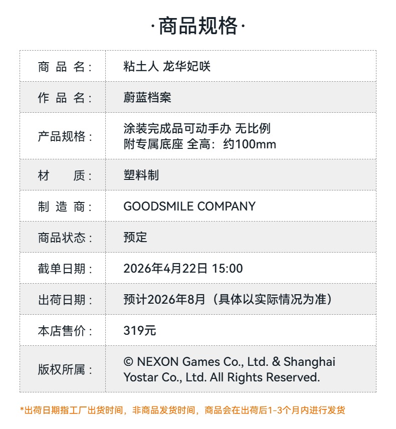 【GSC预售定金】粘土人 龙华妃咲 蔚蓝档案 附官方限定特典