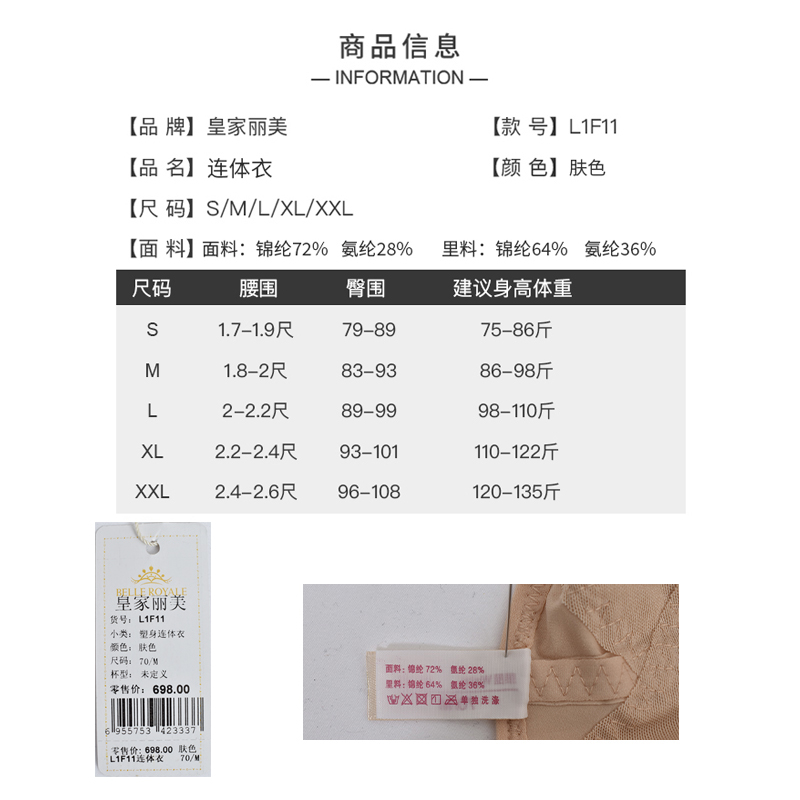 皇家丽美塑身连体衣收腹提臀女紧身显瘦塑型内衣L1F11