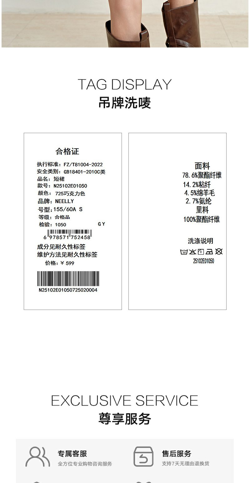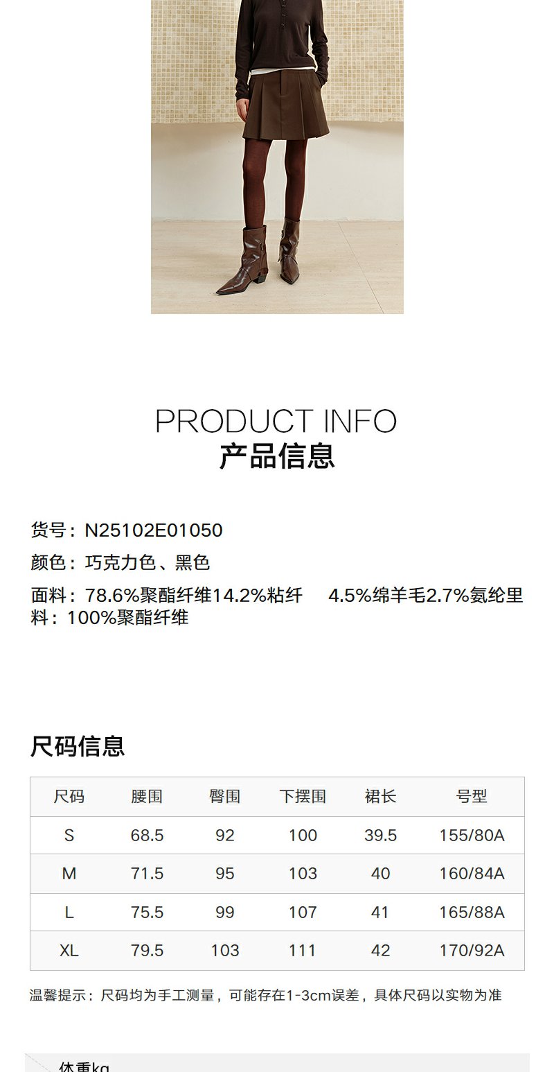NEELLY纳俪商场同款冬季新款经典立体复古百褶裙女美拉德显瘦短裙N25102E01050