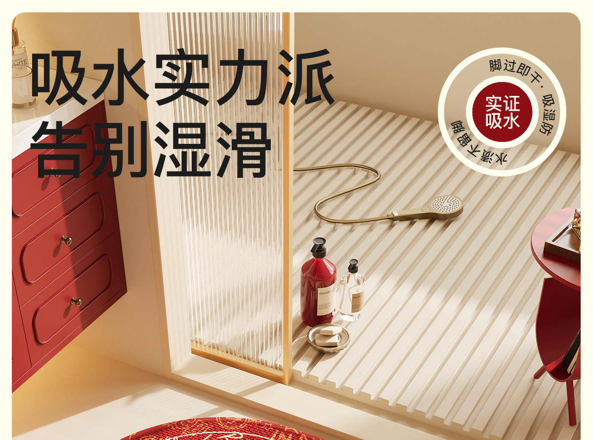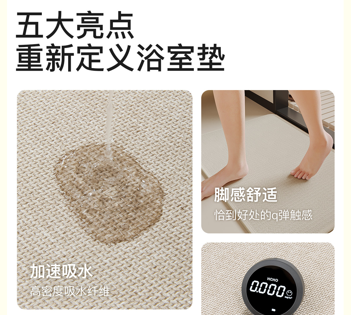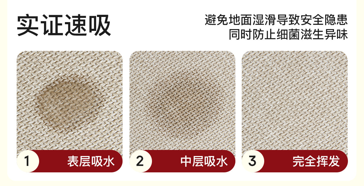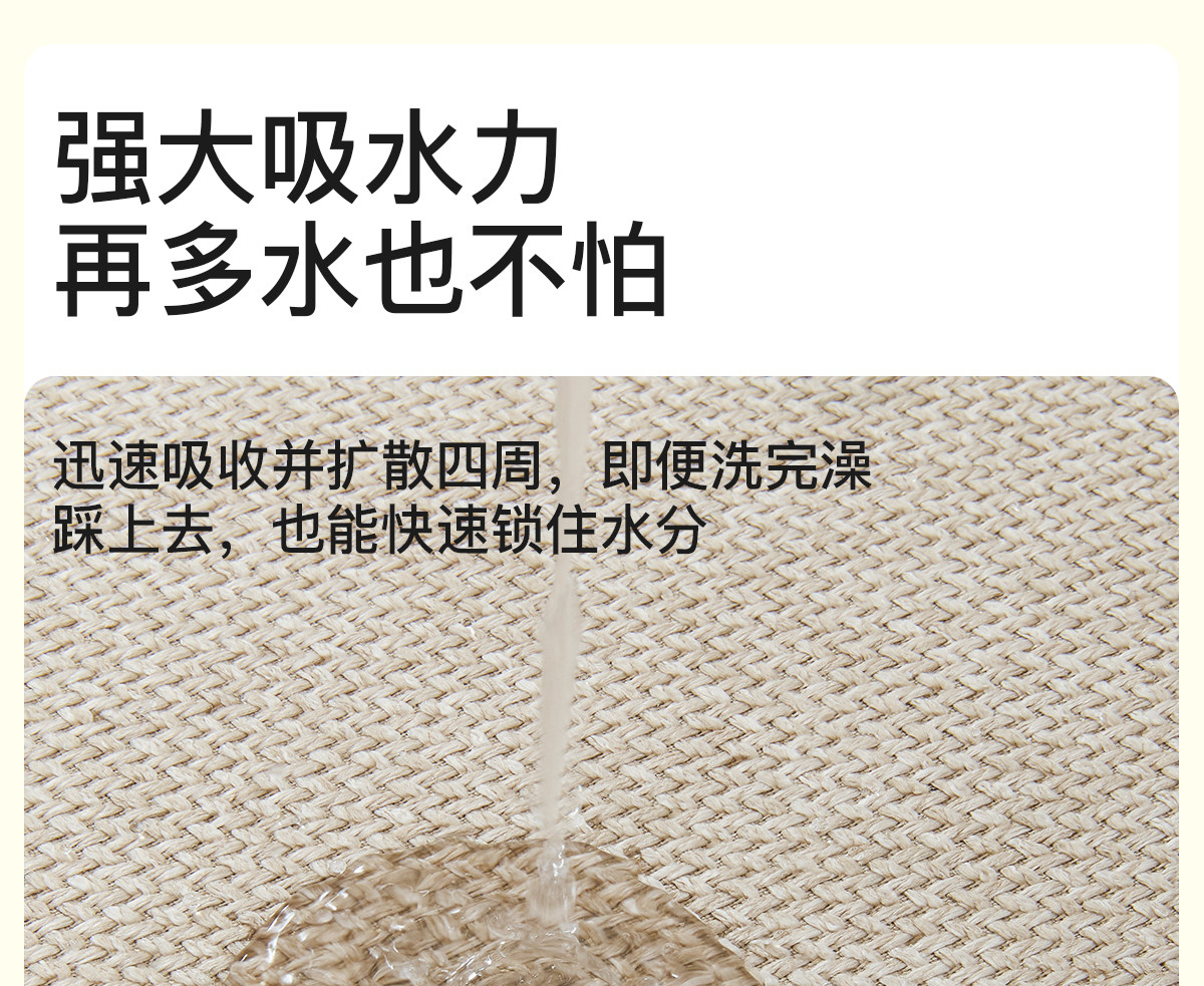 慢说小椰方浴室垫泡格麻+橡胶底 速吸防滑不容易移位脚感Q弹不易发霉可机洗可冲洗