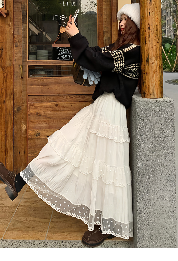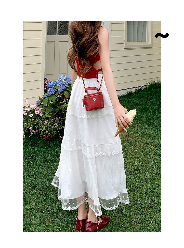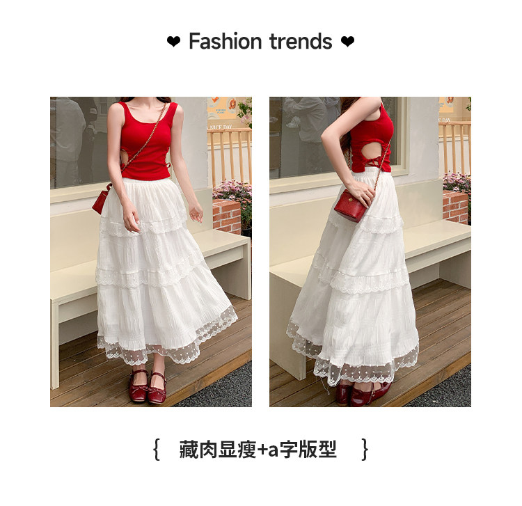 【藏肉显瘦一绝69/件】🌼白色蕾丝花边半身裙女春夏新款高腰显瘦中长款甜美风a字蛋糕裙聚★为爱严选★为爱严选