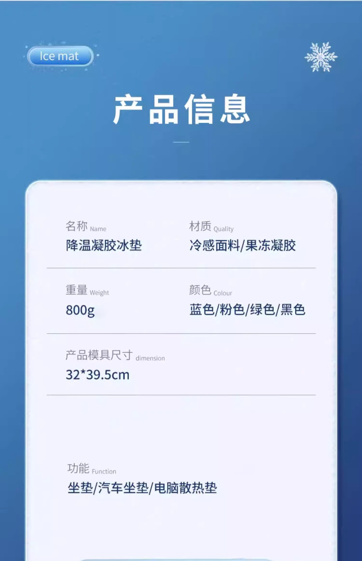 小贴士:搭配提前放冰箱保鲜层或空调房使用 降温增强,长期暴露温度高环境下降温减弱。 注意事项:此产品仅为冰晶凝胶填充物非充电型,效果根据使用而异不能以个体降温感觉为售后申请理由,介意慎拍! |