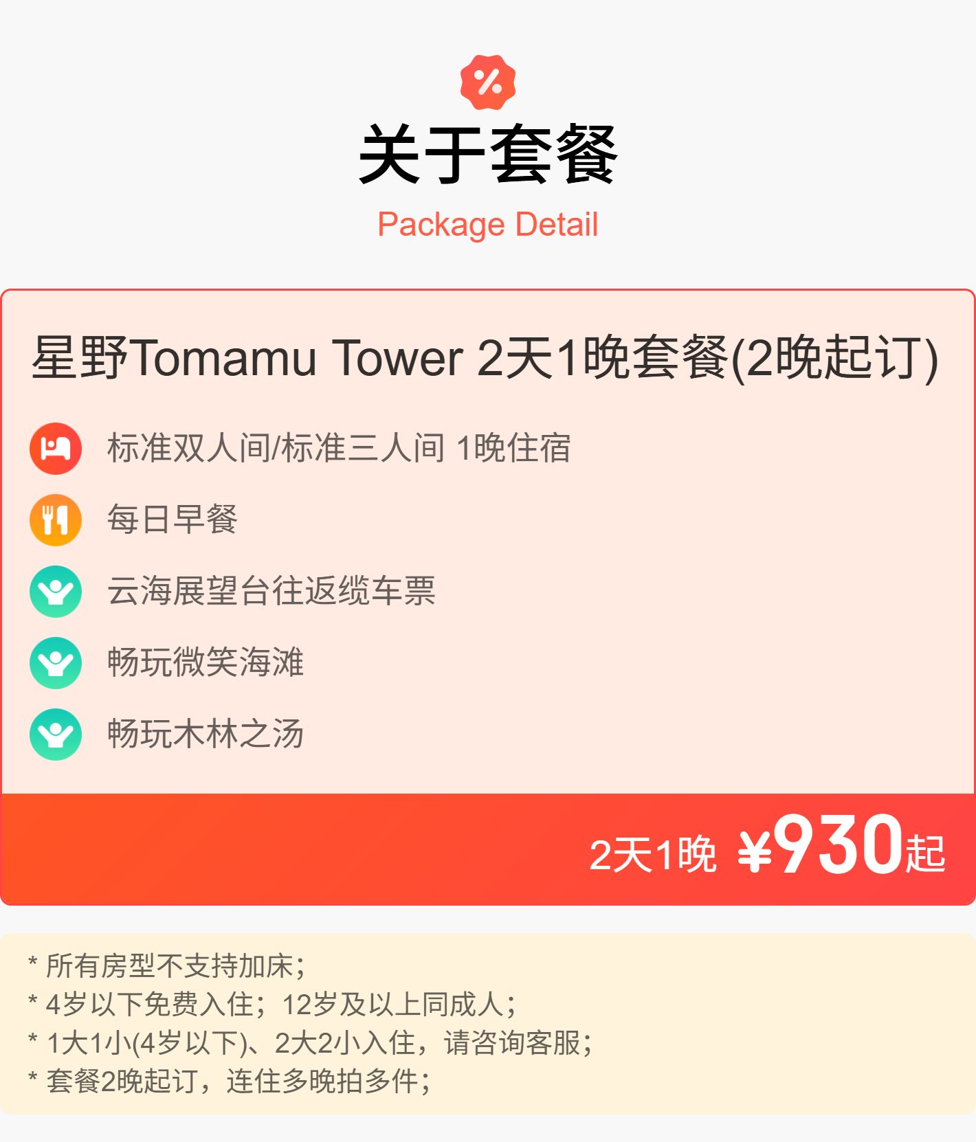 2晚起订【星野Tomamu Tower 塔娃】含早餐、云海展望台缆车、微笑海滩、木林之汤~