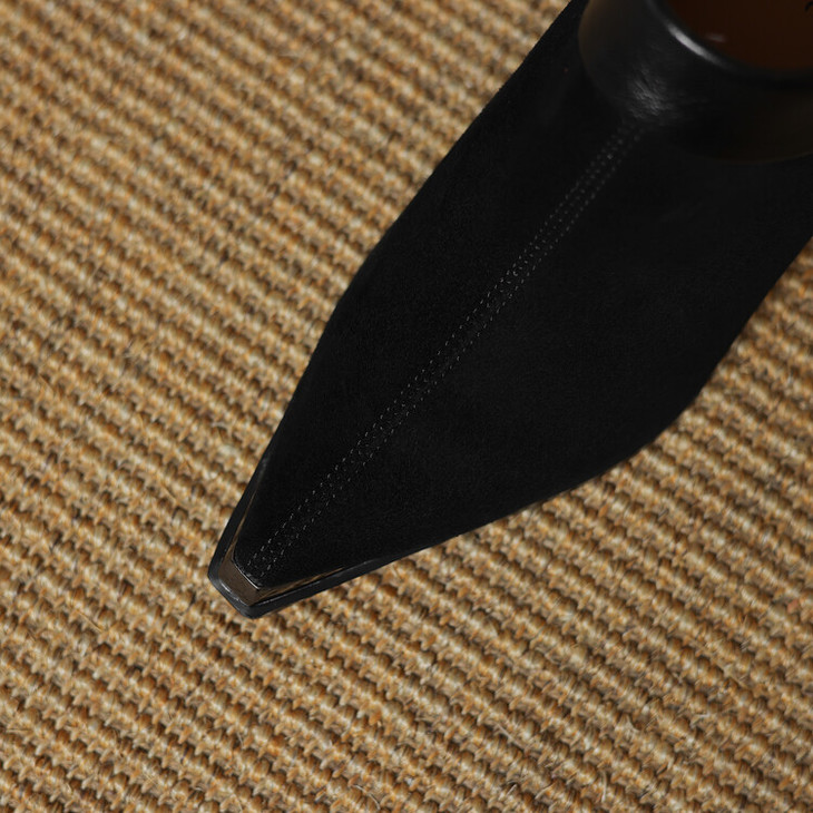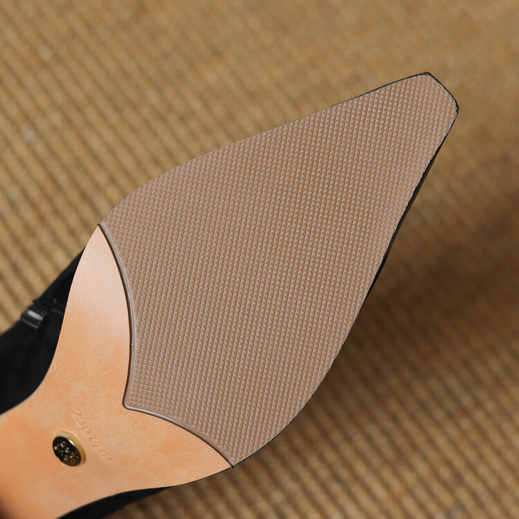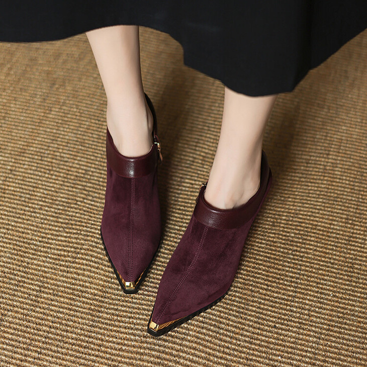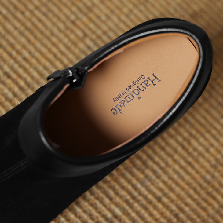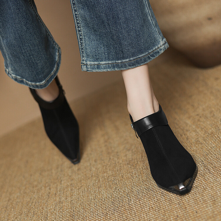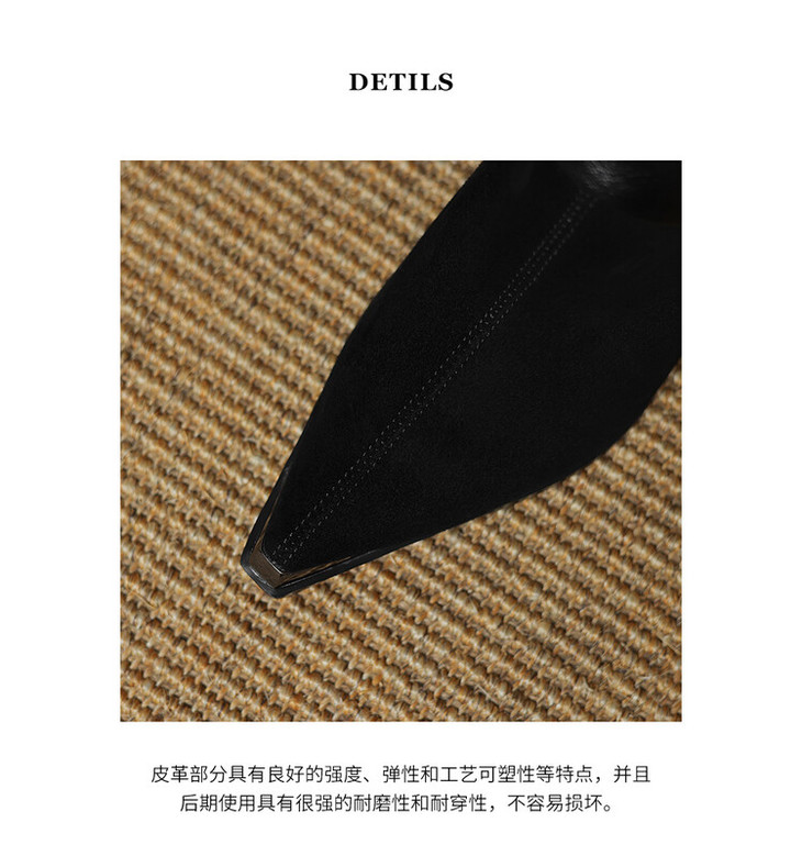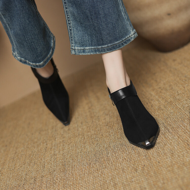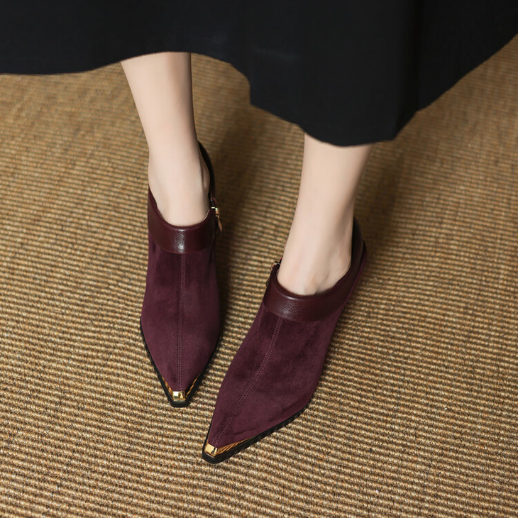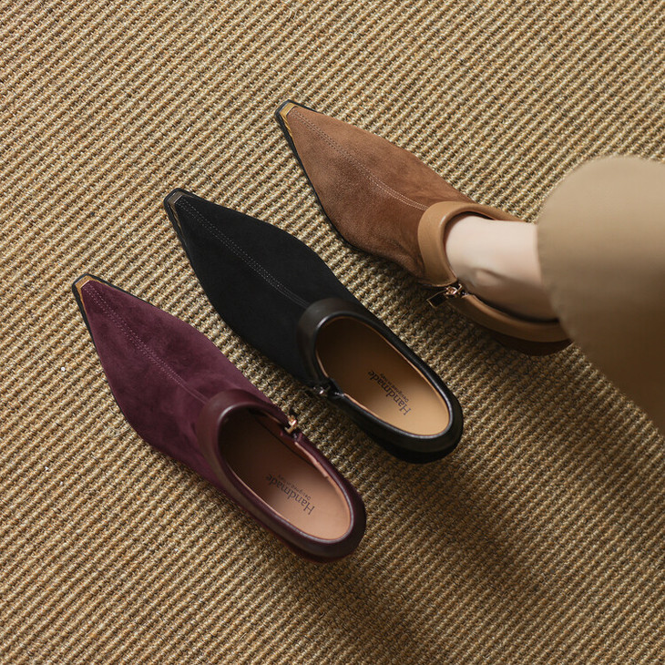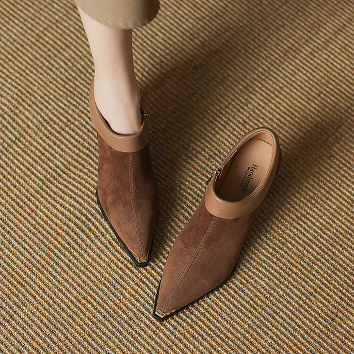 【预售5天】小方头女高跟鞋粗跟头层磨砂羊皮铁头侧拉链浅口女单鞋LD&6961